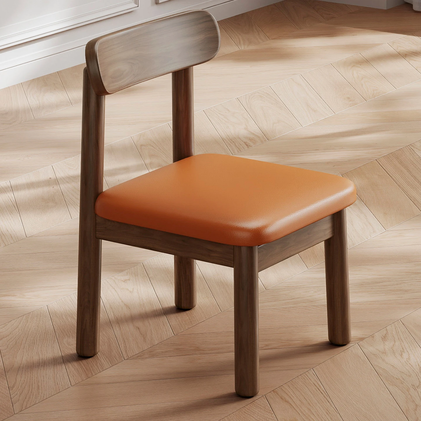 シンプルでスタイリッシュな無垢材の小椅子!背もたれ付き、クッション性抜群のソフトパック。玄関での靴替えやリビング、子供用のミニスツールに最適。家族みんなにぴったりの使いやすさ!