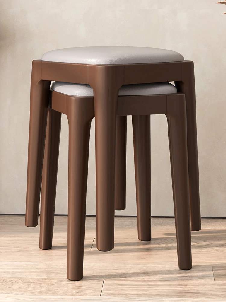 リビング用シンプルモダン木製スツール - おしゃれな小型スツール、ダイニングテーブルにもぴったり!実用的な積み重ね可能なソフトパッド付き、家庭での快適さを追求した一品です。