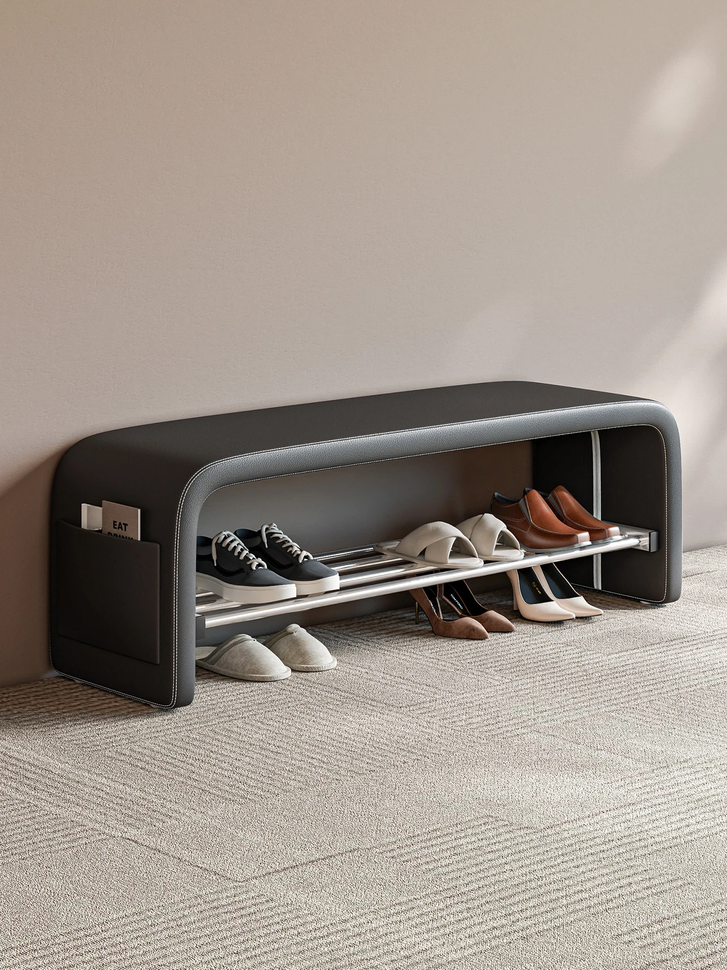 洗練されたデザインの玄関用ベンチ - ベッドルームの足元にぴったり!靴を脱ぐのに最適な軽奢スタイル、家族やお客様を迎えるのにふさわしい高級感あふれるアイテムです。