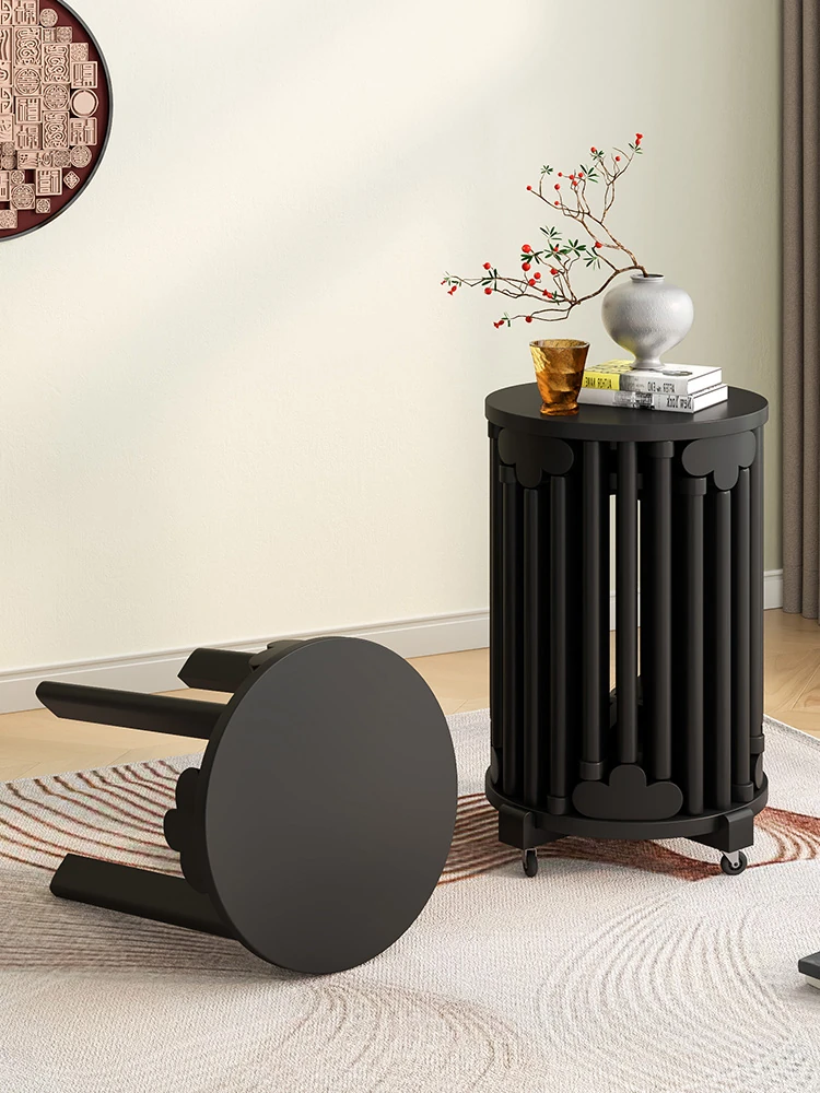 家用スタッキングスツール - 天然木材製の円形スツール、モダン中式デザイン!おしゃれなティーテーブルやダイニングにぴったり!食事やお茶の時間をより楽しく!