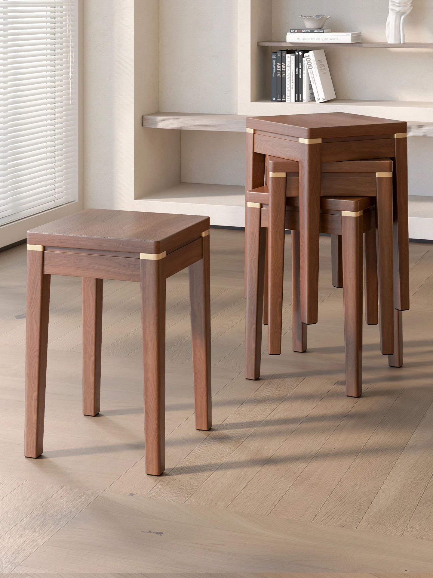 Multipurpose Stacking Stool for Living Room and Dining - Space-Saving Wooden Bench Set, Durable Solid Wood Design, Perfect for Home Use, Easy to Store and Organize