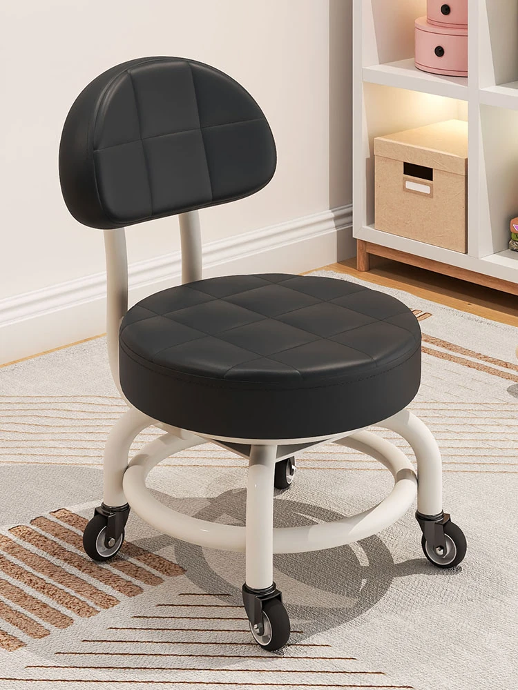 Multifunctional Swivel Stool with Wheels - Comfortable Low Shoe Changing Bench for Home, Kids' Backrest Chair, Soft Padded Round Ottoman for Living Room, Perfect for Easy Mobility and Versatile Use!