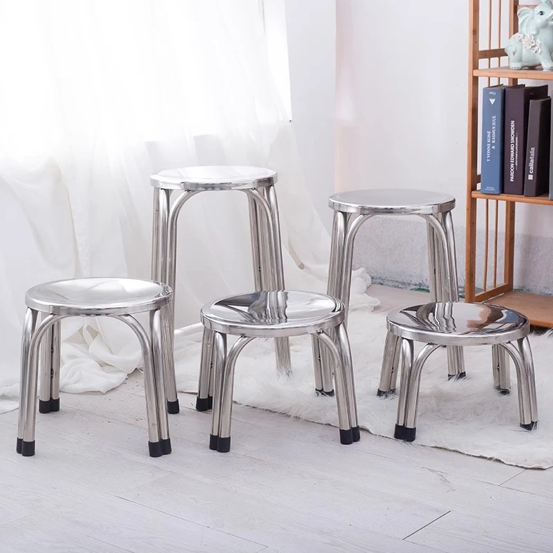Modern Minimalist Thickened Stainless Steel Round Stool - Durable Metal Four-Legged Chair for Living Room, Home, or Outdoor Use