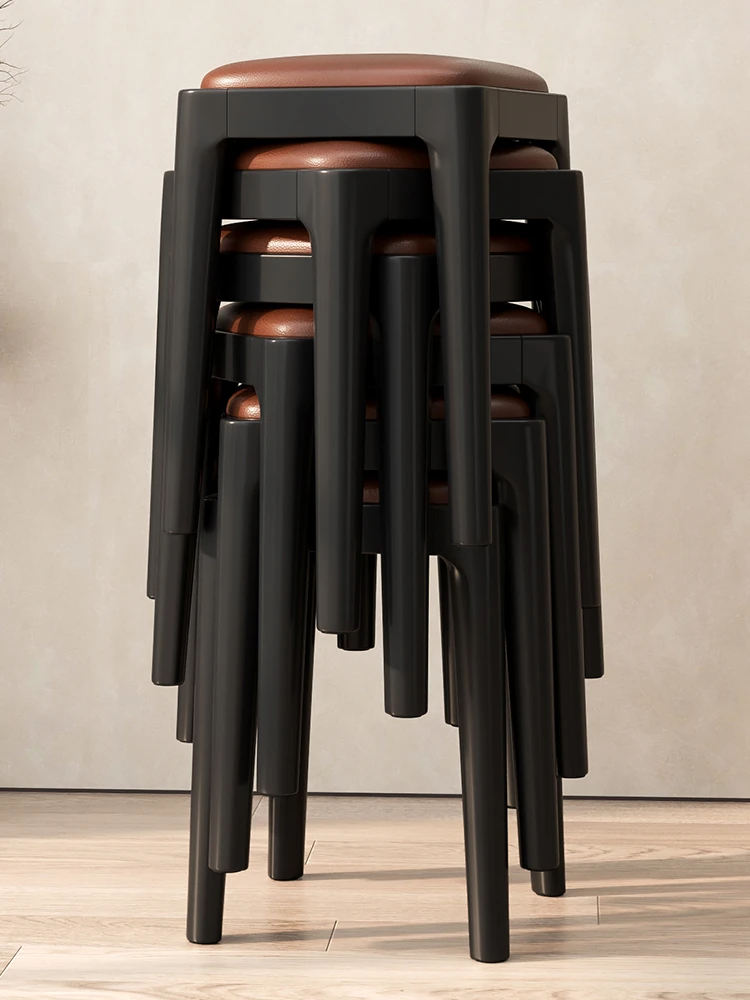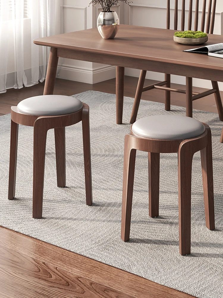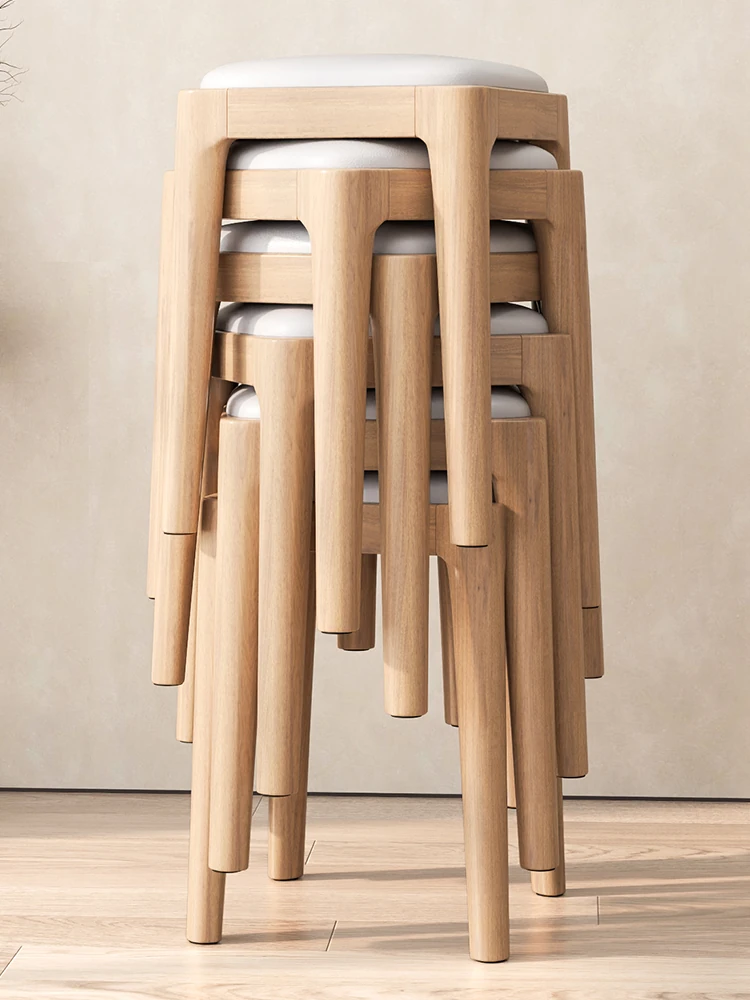 Stackable Solid Wood Stool - Modern Chinese Style Round Stool for Home Use, Perfect for Dining and Coffee Tables, Natural Wood Design, Space-Saving and Stylish!