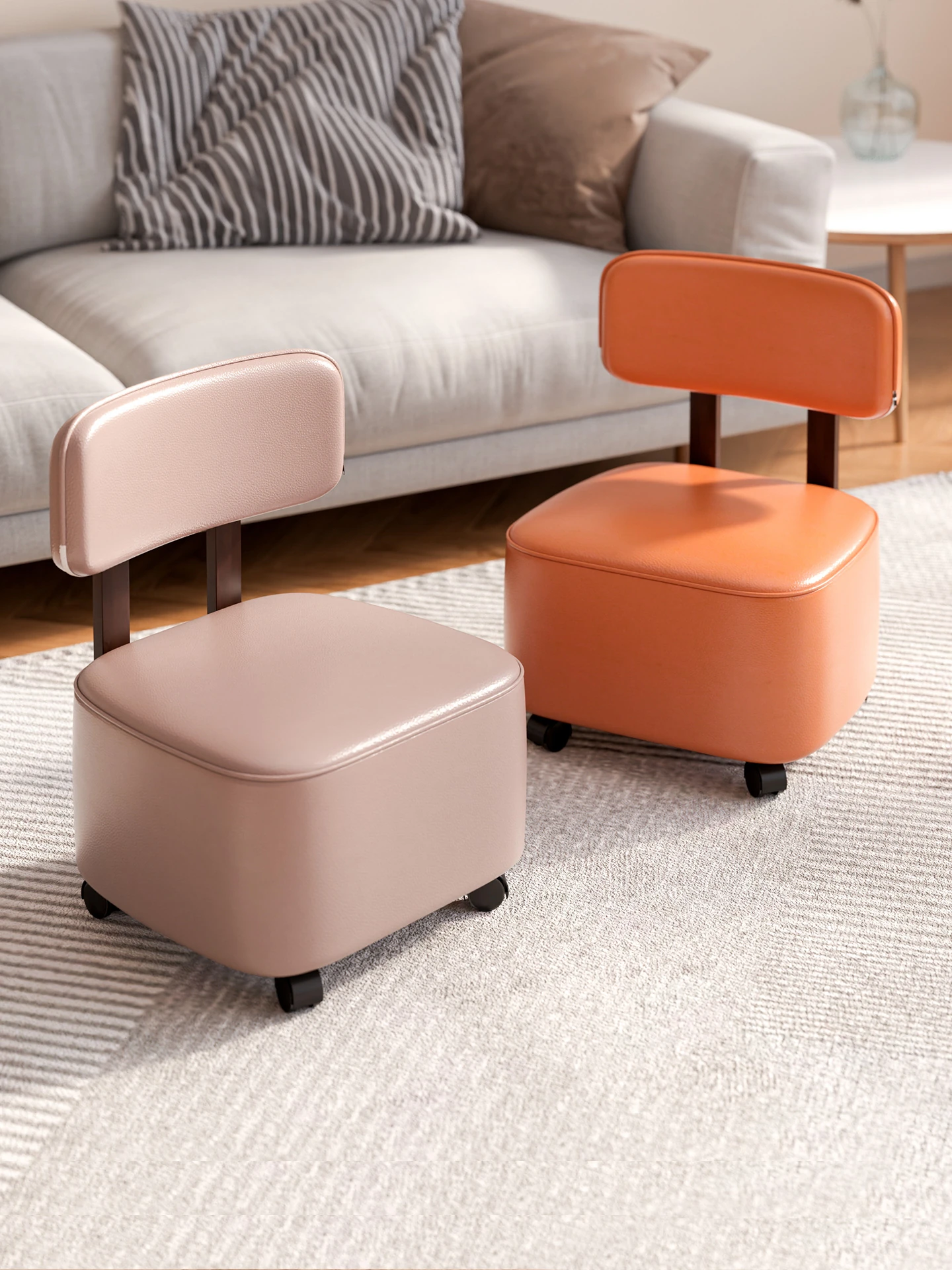 Portable Shoe Changing Stool with Wheels - Stylish and Convenient Entryway Bench for Living Room - Versatile Low Chair with Swivel Casters - Perfect for Home Use