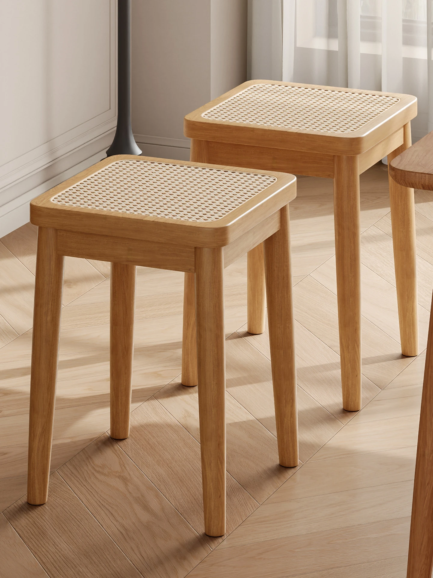 Stackable Solid Wood Stool for Home Use - Modern Minimalist Square Dining Bench, Versatile Chair for Living Room, Compact Low Stool, Perfect for Extra Seating