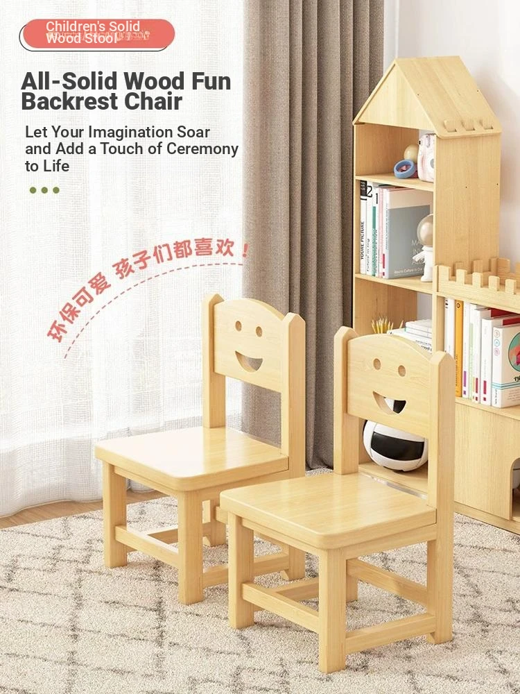 Solid Wood Kids Stool with Backrest - Perfect for Home Use and Kindergartens, Sturdy and Stylish Wooden Bench for Children, Ideal Low Seat for Playtime and Learning!