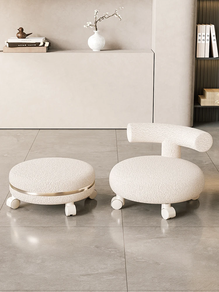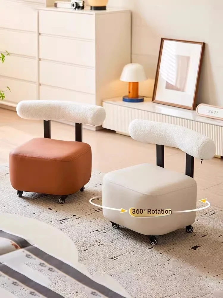 Multifunctional Rolling Stool - Creative Home Sofa Bench with Wheels for Kids, Portable Low Seat for Living Room, Shoe Changing Bench with Backrest
