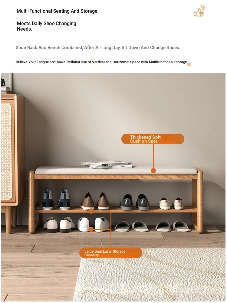 Solid Wood Shoe Bench for Entryway - Stylish and Functional Long Bench with Cushion, Perfect for Sitting and Storing Shoes at Home, Ideal for Hallway or Mudroom