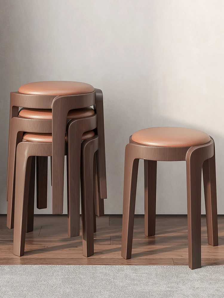 Modern Stackable Wooden Stool - Versatile Dining Table Seat for Living Room, Space-Saving Design, Durable Solid Wood, Perfect for Home Use, Easy to Store and Combine, Round Stool for All Occasions