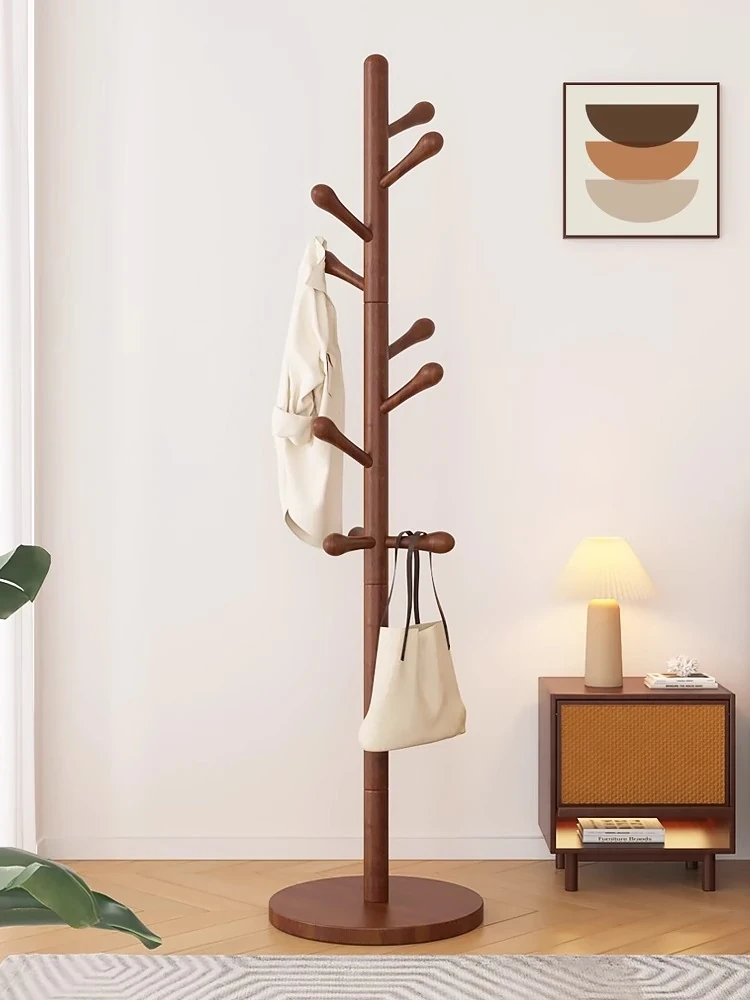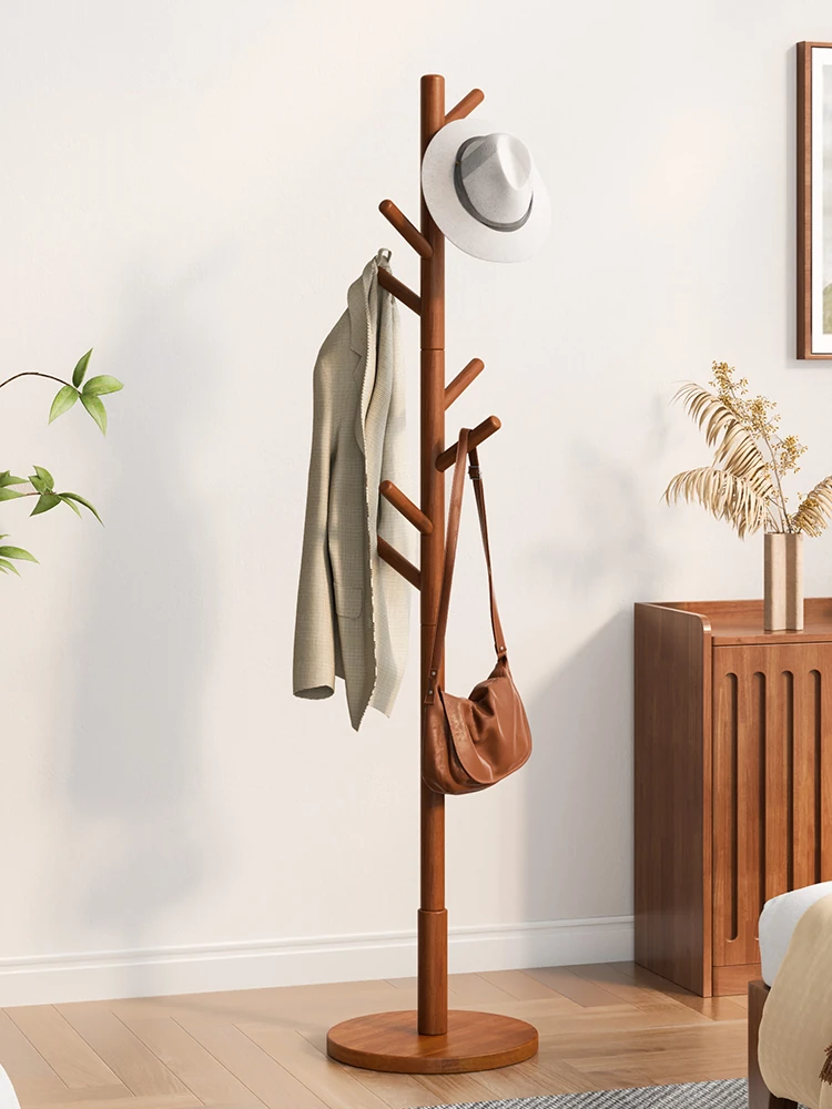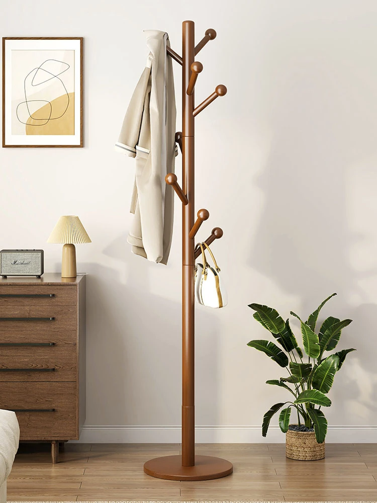 Solid Wood Floor Coat Rack - Simple and Stylish Hanging Stand for Bedroom, Ideal for Clothes and Bag Storage, Perfect for Home Use and Trendy Interior Décor