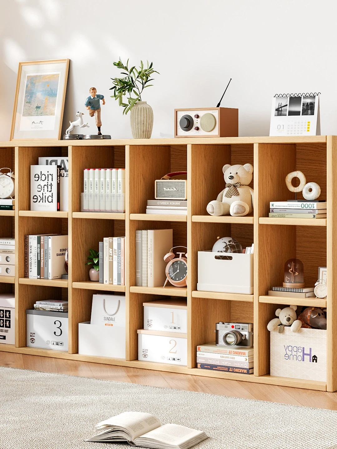 Solid Wood Grid Bookshelf - Floor Standing Storage Rack for Kindergartens, Backpack Cabinet, Short Bookcase, Home Storage Organizer, Stylish and Functional Storage Solution for Every Room