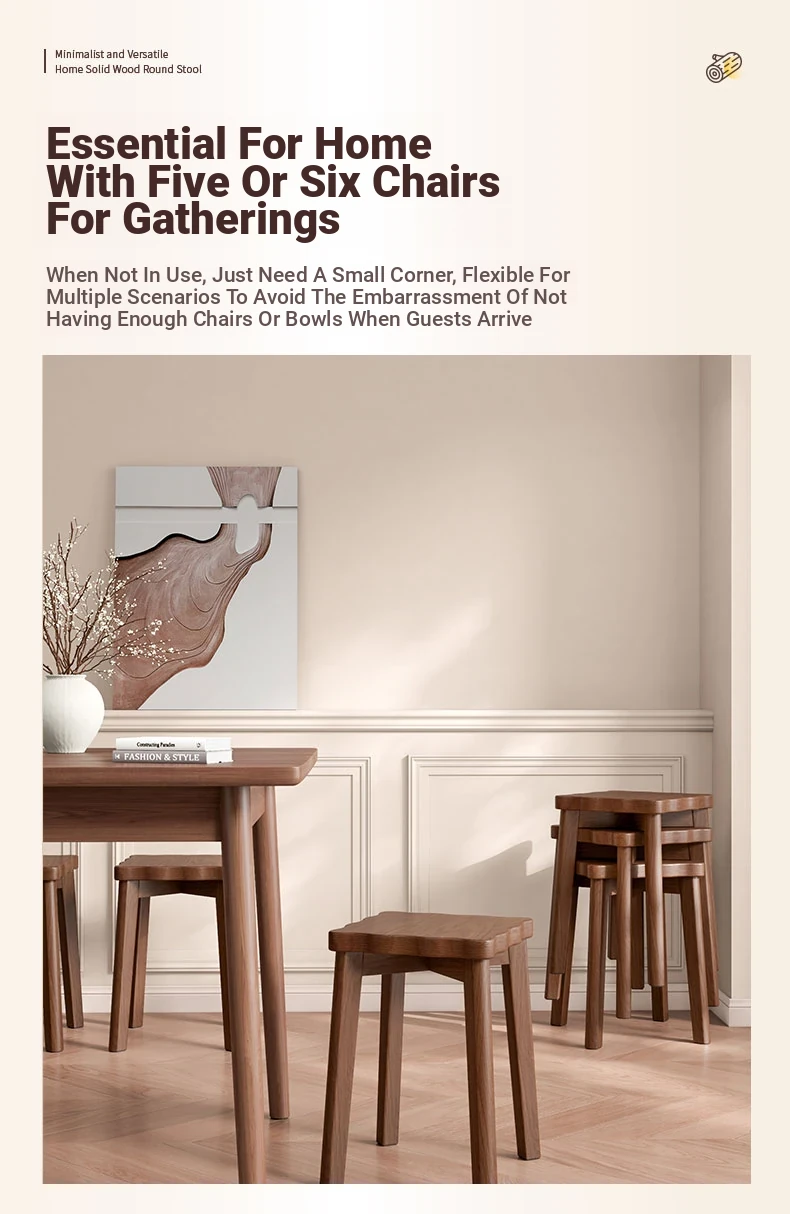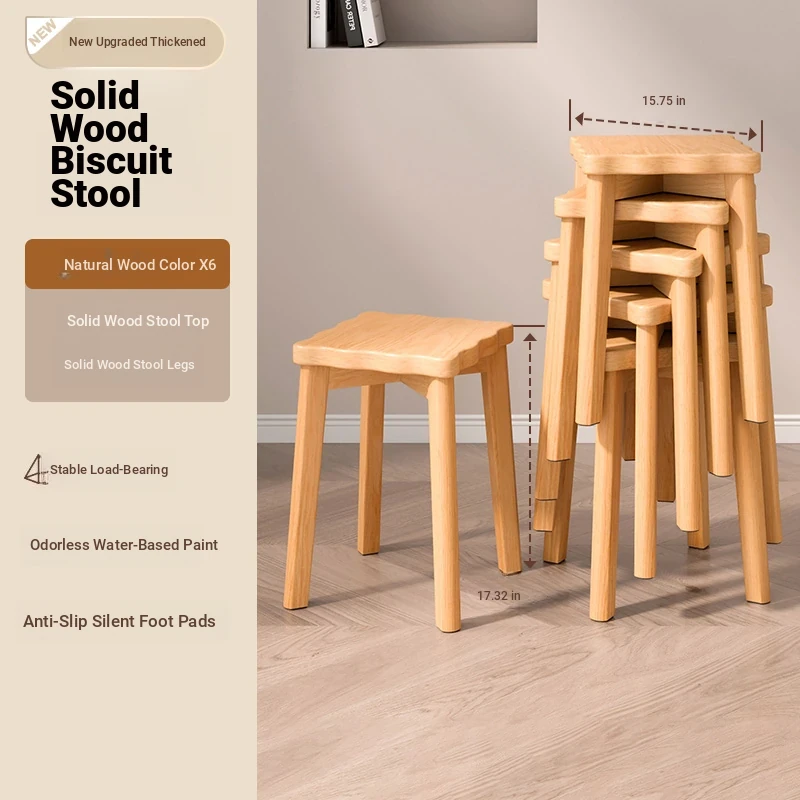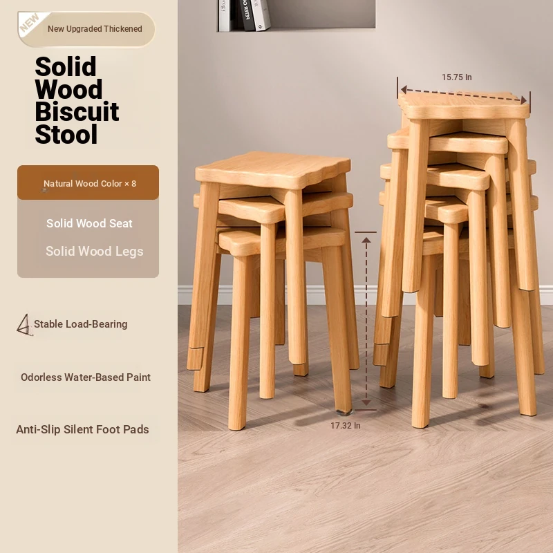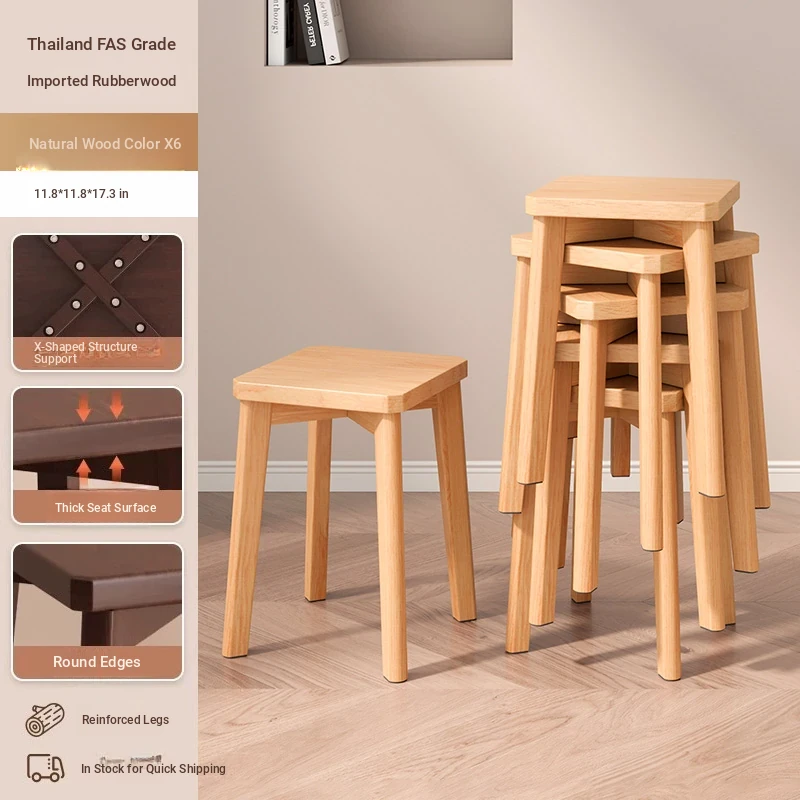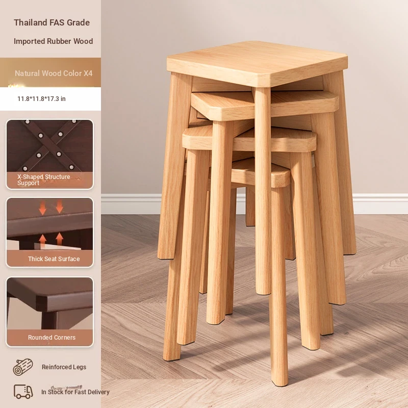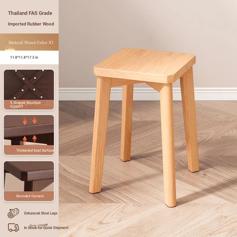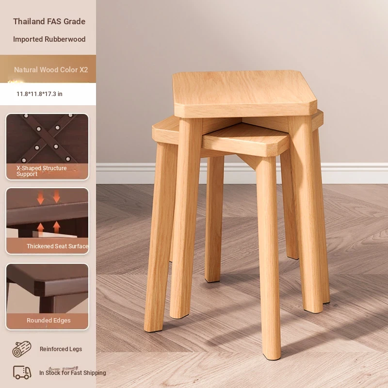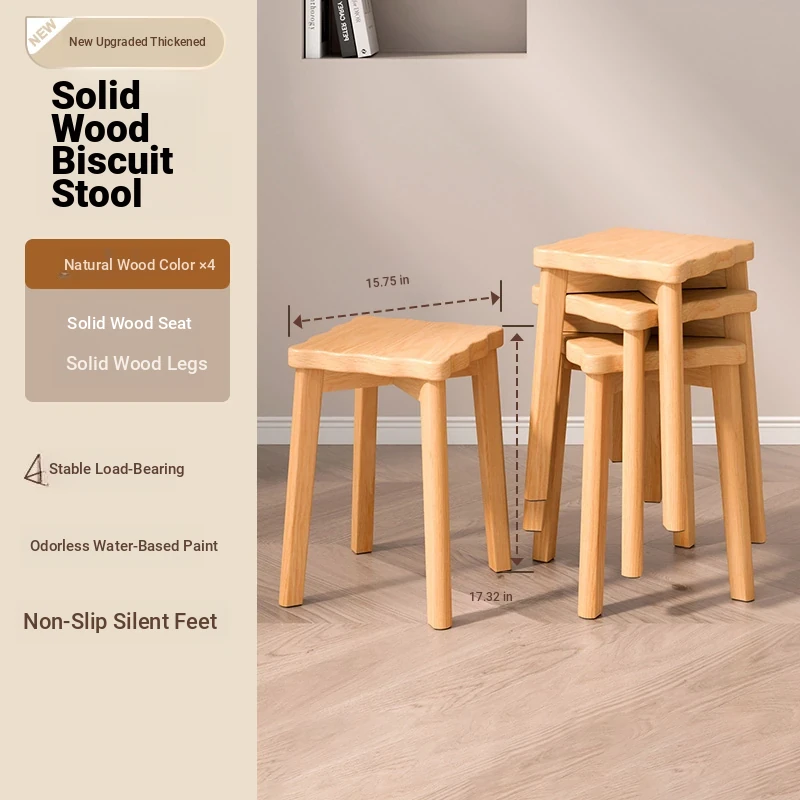 Stylish Stackable Wooden Stool for Home - Versatile Dining, Makeup, and Grooming Bench in Modern Chinese Design