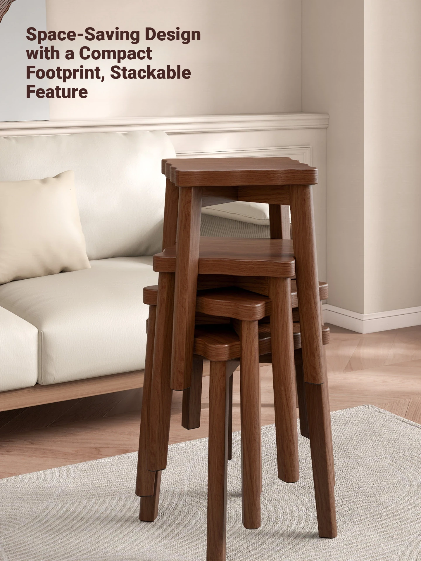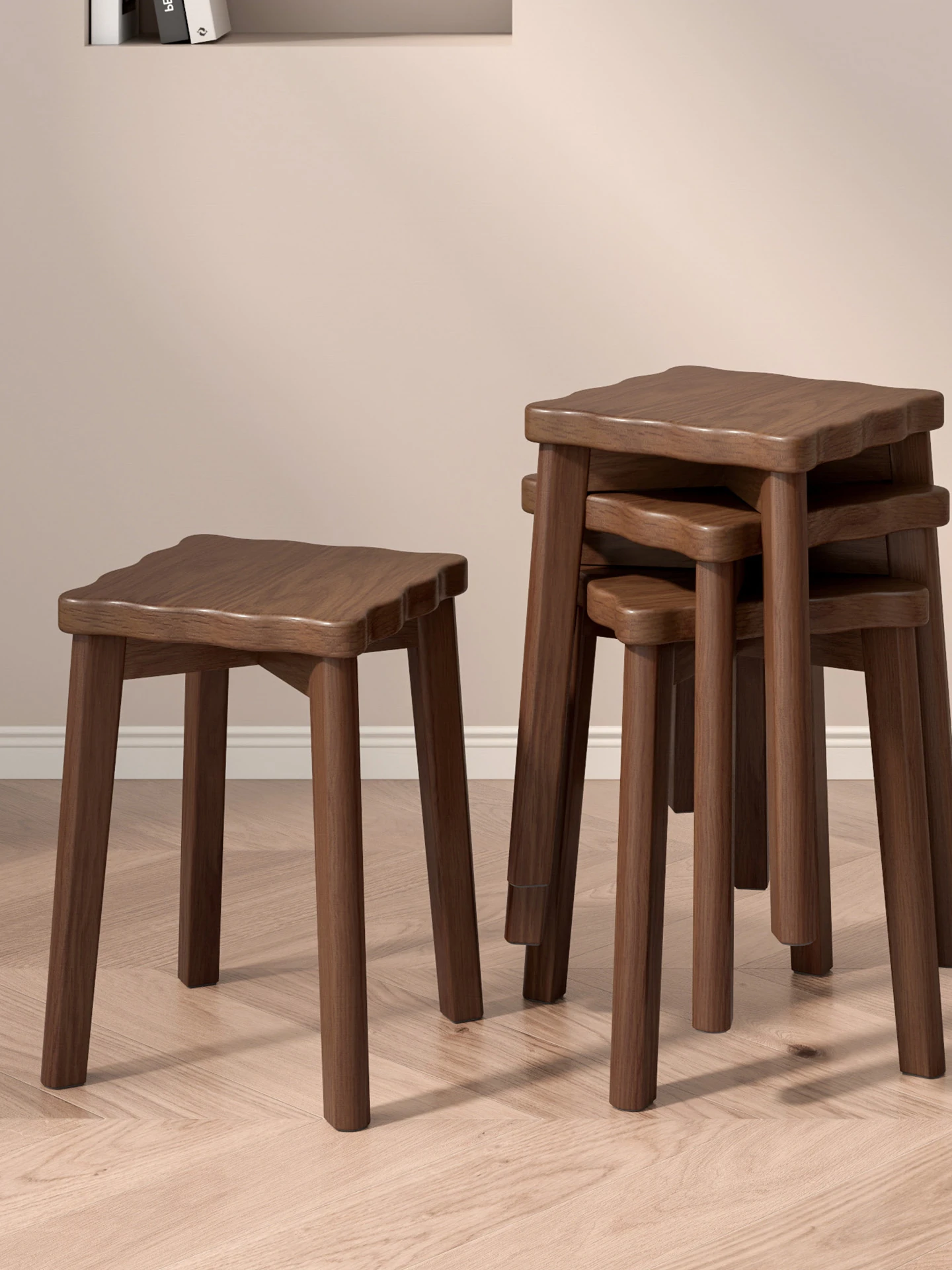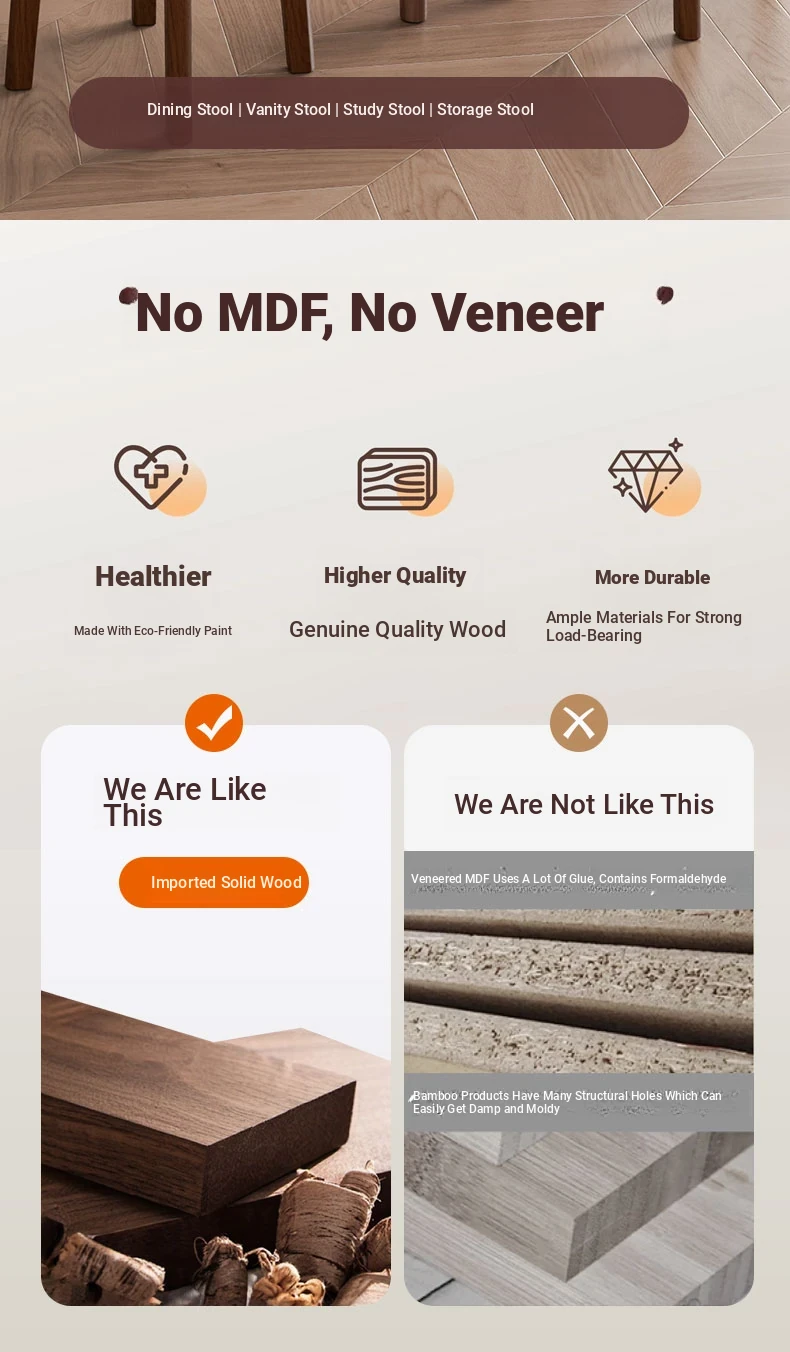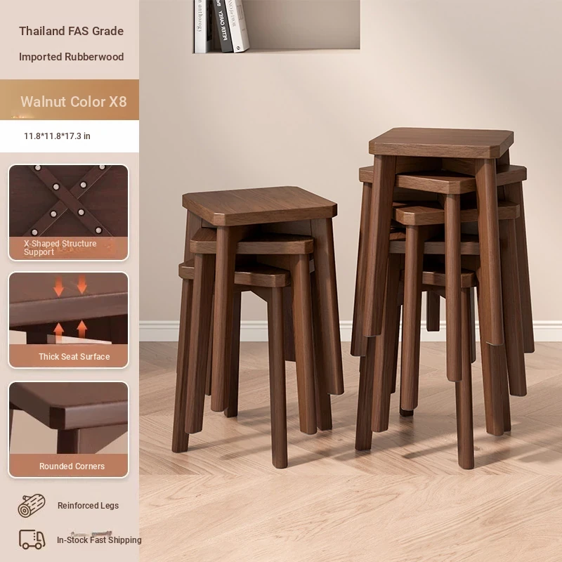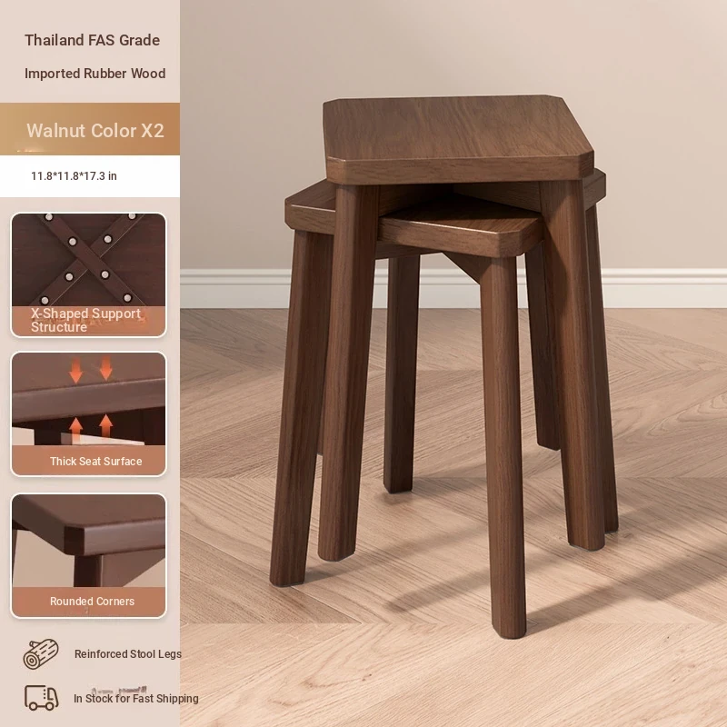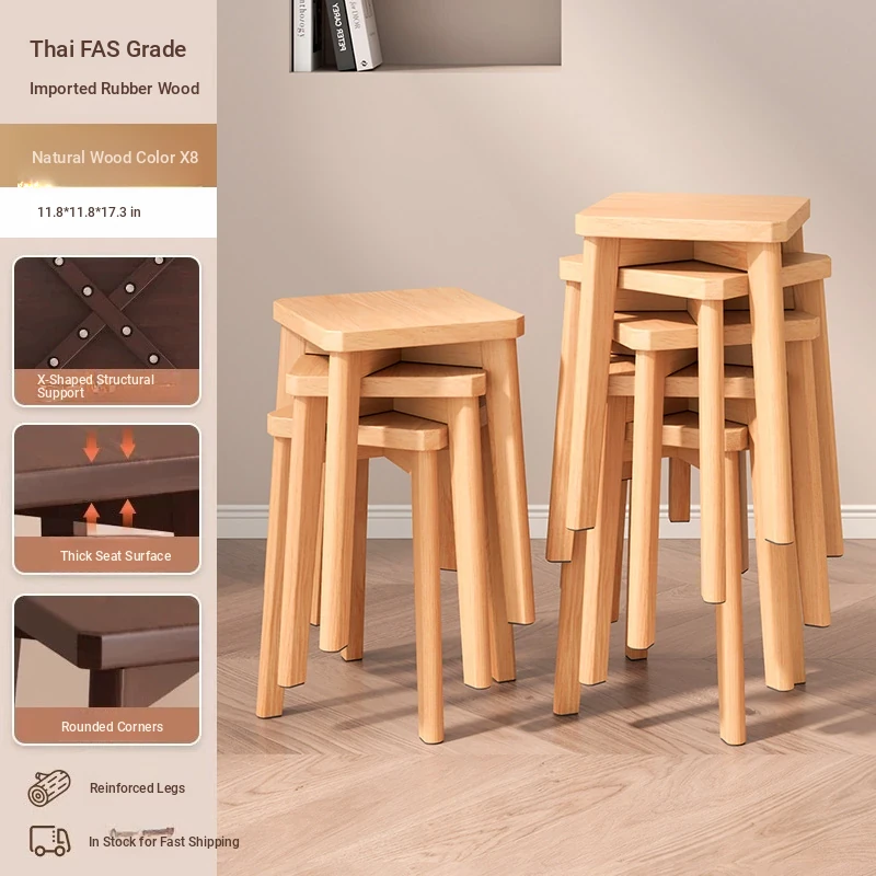 Stylish Stackable Wooden Stool for Home - Versatile Dining, Makeup, and Grooming Bench in Modern Chinese Design