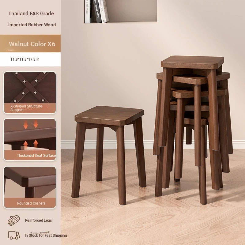 6 Pack-[thickened Square Stool]-Walnut Color [All Rubber Wood Bold Stool Legs-Quality Assurance]]