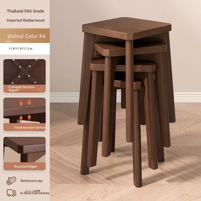 4 Pack-[thickened Square Stool]-Walnut Color [All Rubber Wood Bold Stool Legs-Quality Assurance]]