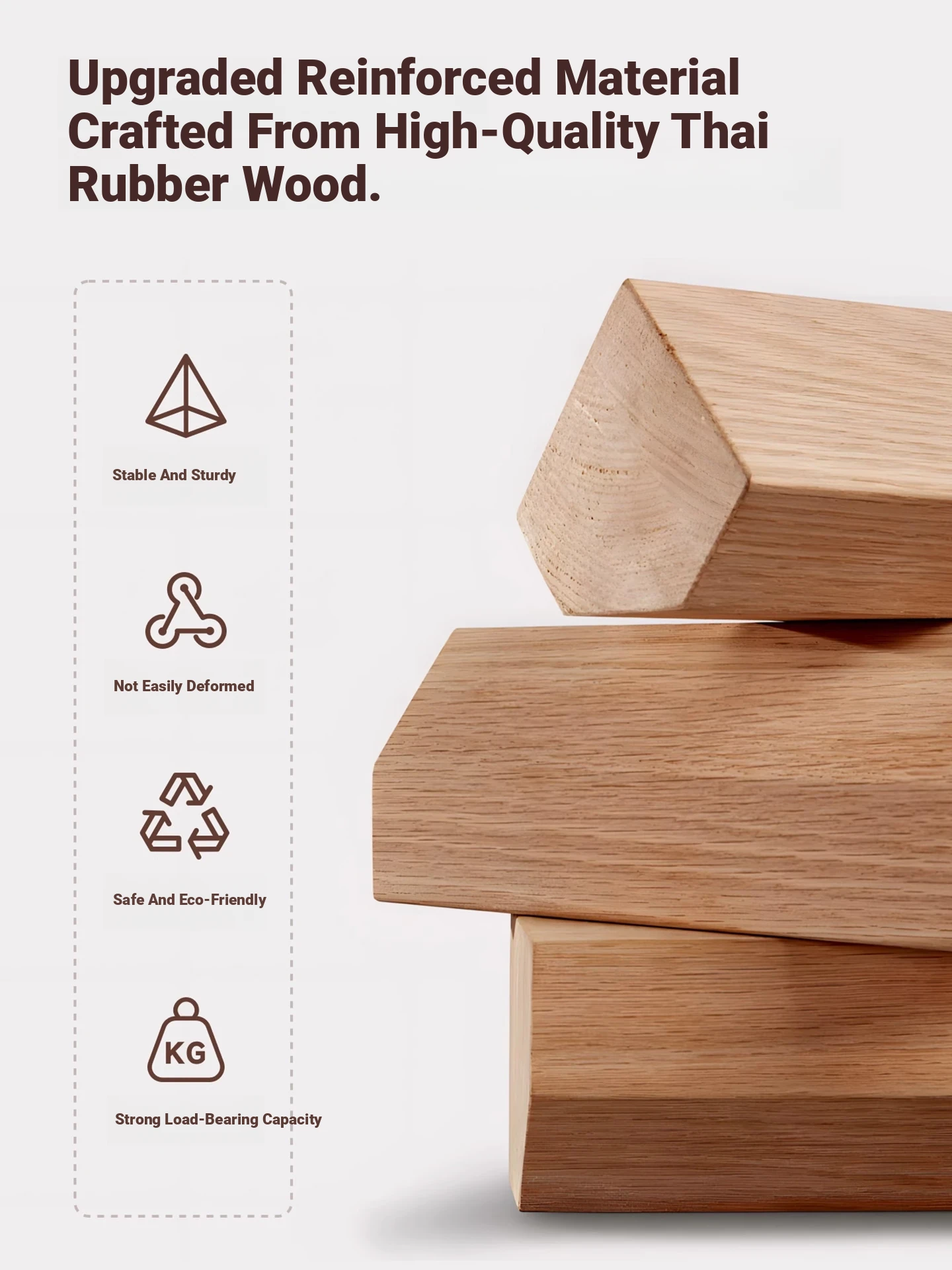 [1 Pack] All Rubber Wood-Log Color [Thick Load-Bearing Strong]]