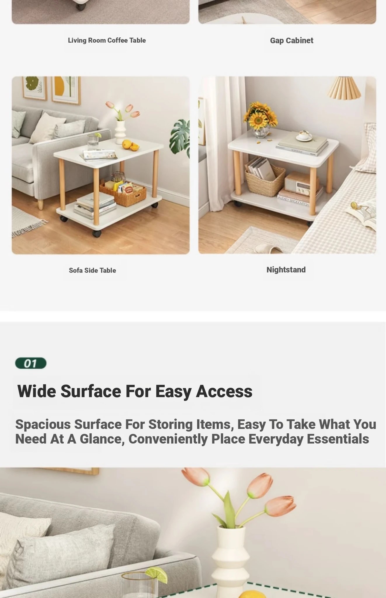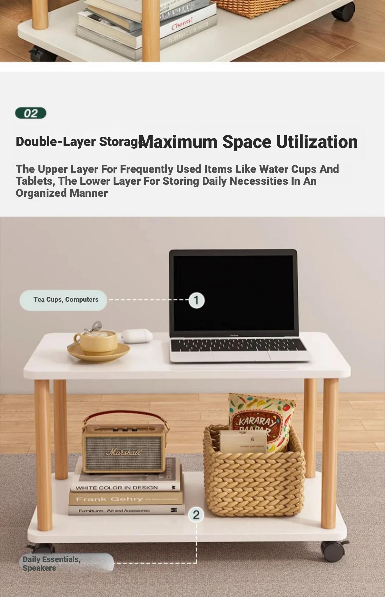 Versatile Rolling Coffee Table with Storage - Easy-to-Move Side Table for Living Room, Sofa, or Bedside - Perfect Small Accent Table with Wheels for Modern Homes