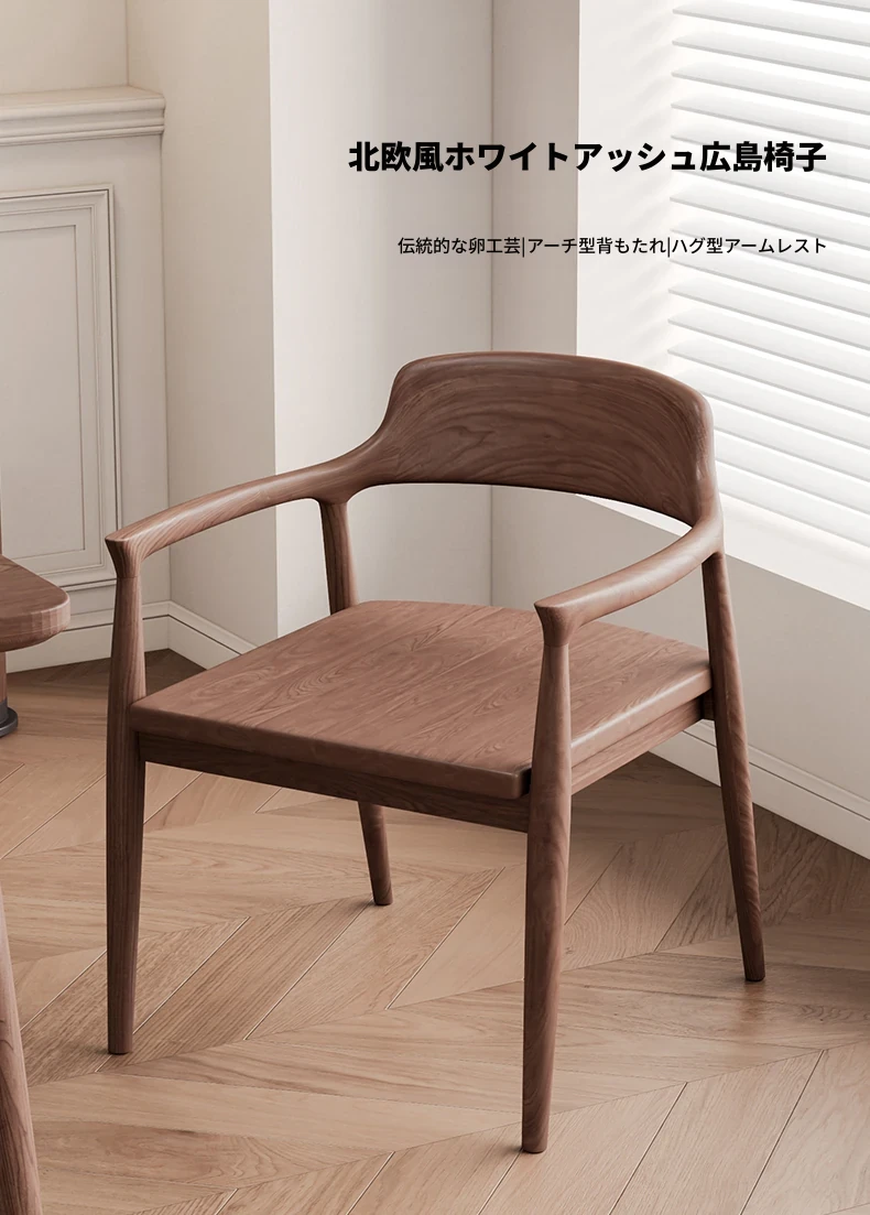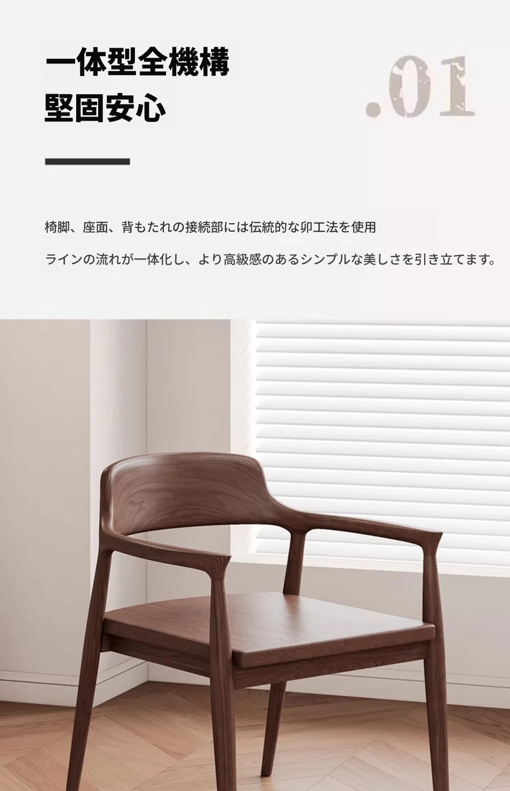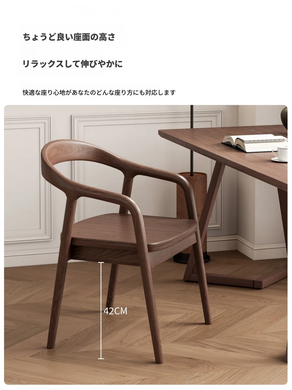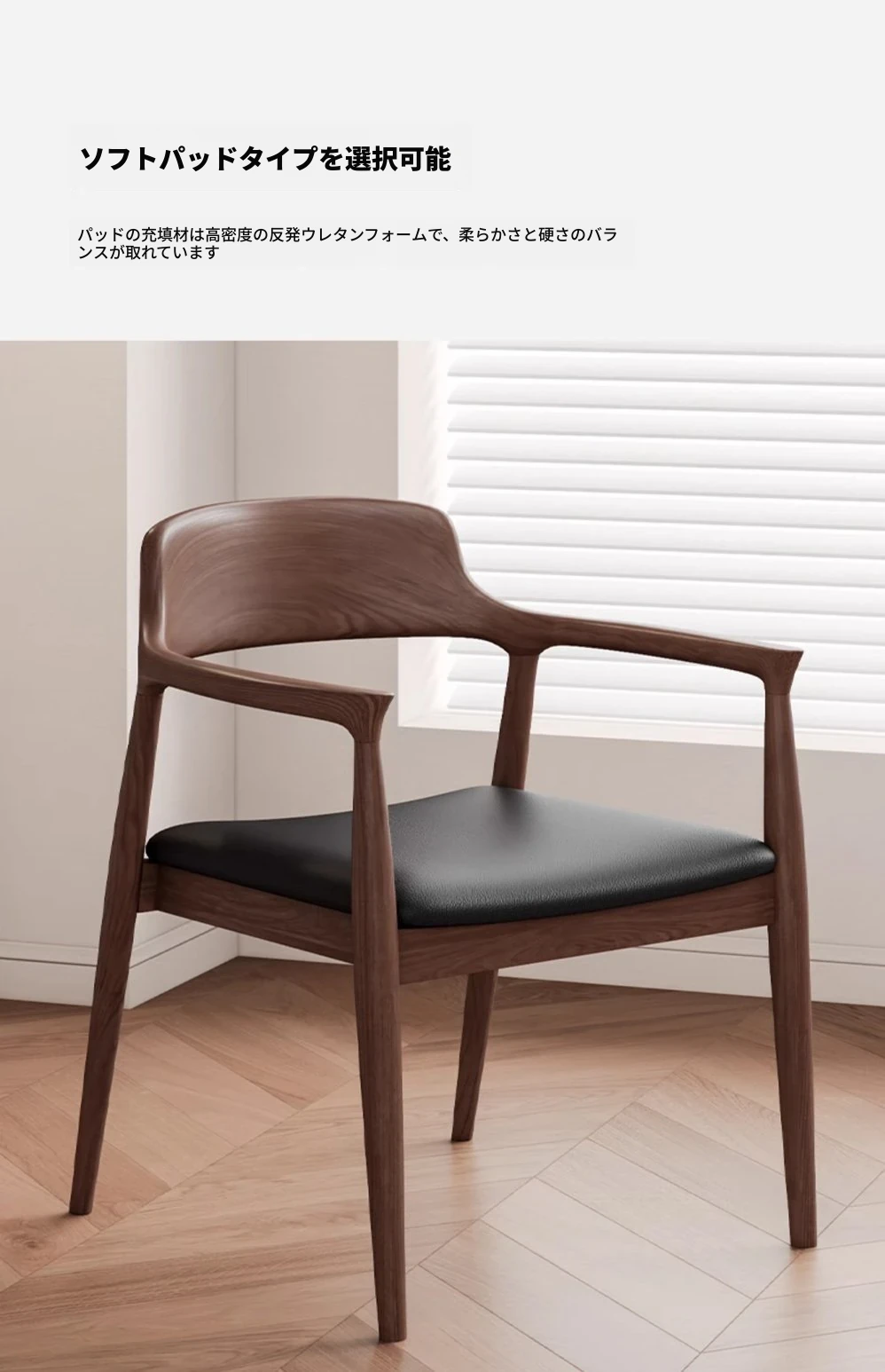 高級感あふれる無垢材のダイニングチェア、快適なクッションとアームレスト付き!おしゃれなリビングや書斎にぴったりなプレジデントチェアで、食事や読書をより豊かに楽しみましょう!