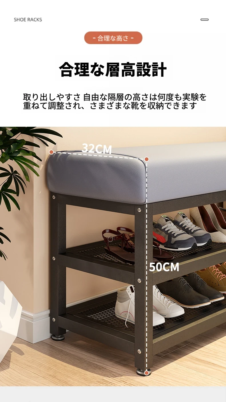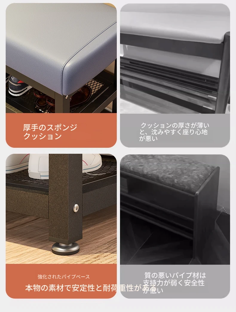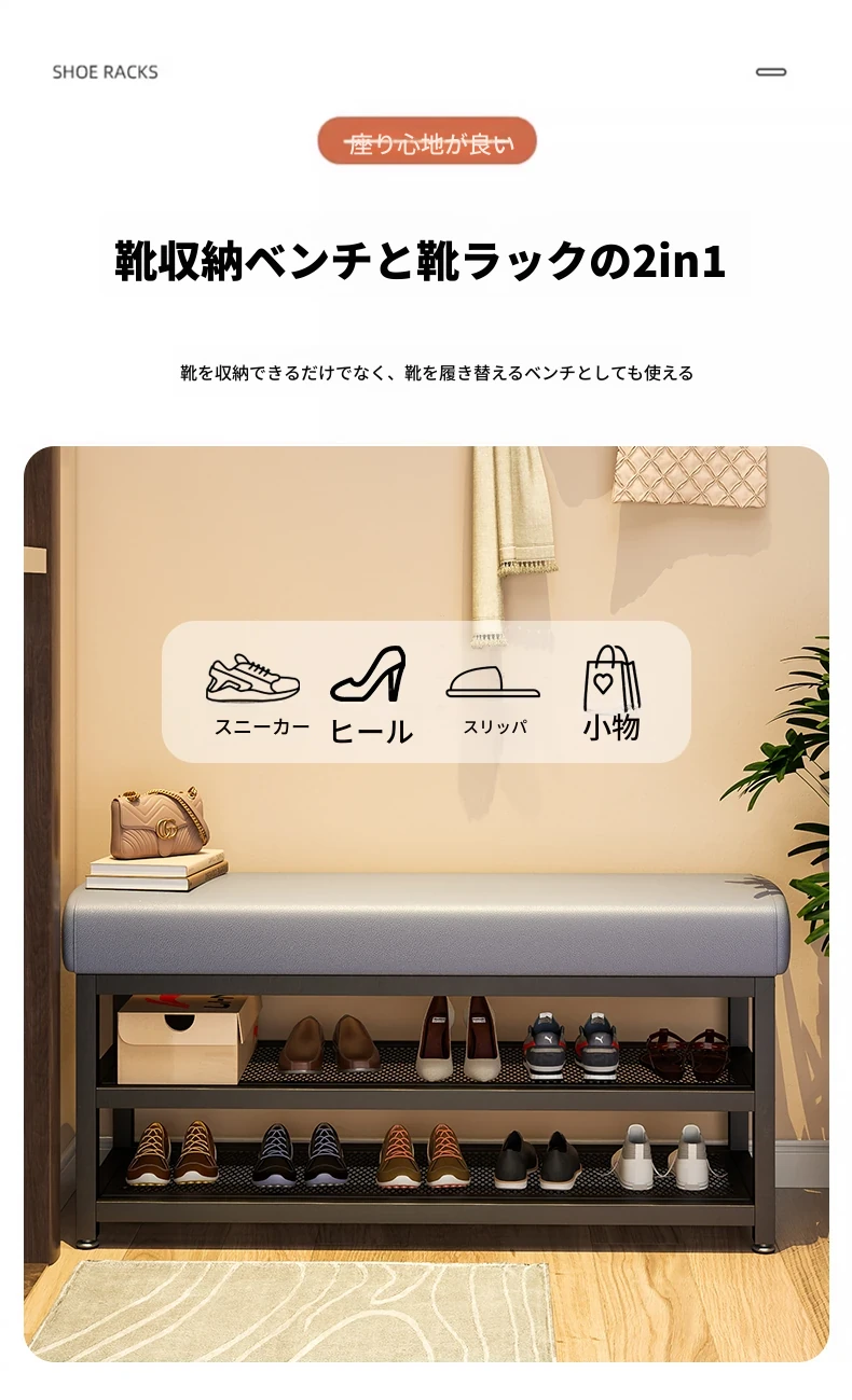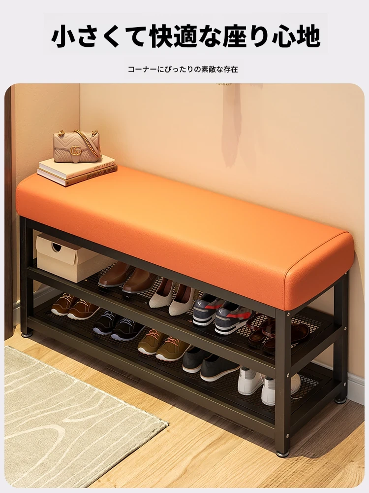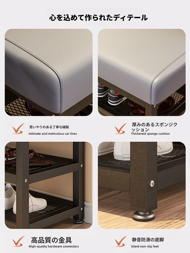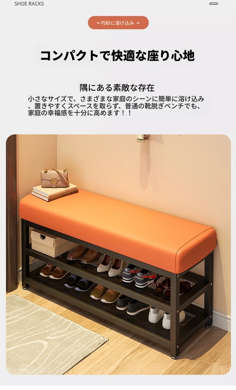 高級感漂うシンプルなデザインの玄関用スリッパベンチ!靴を履く際の便利な収納スペース付き。おしゃれな長方形のシューズラックで、家の入り口を洗練された雰囲気に演出します。座れる&収納できる便利さを兼ね備えたアイテムです!