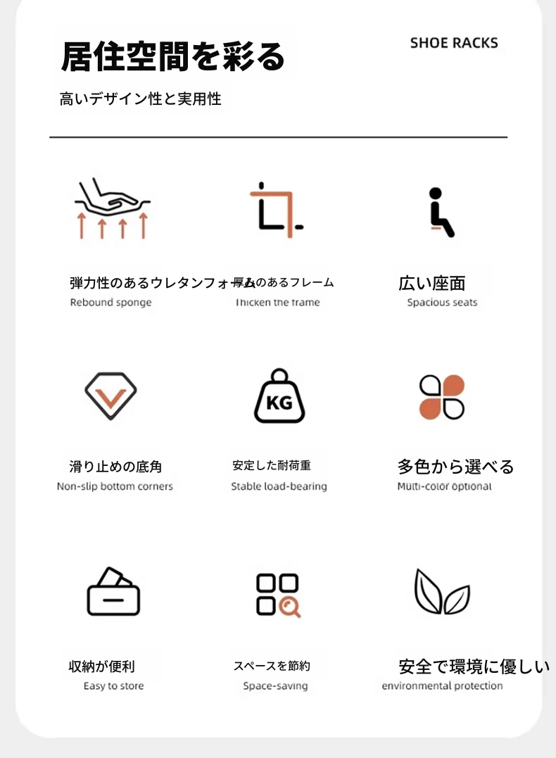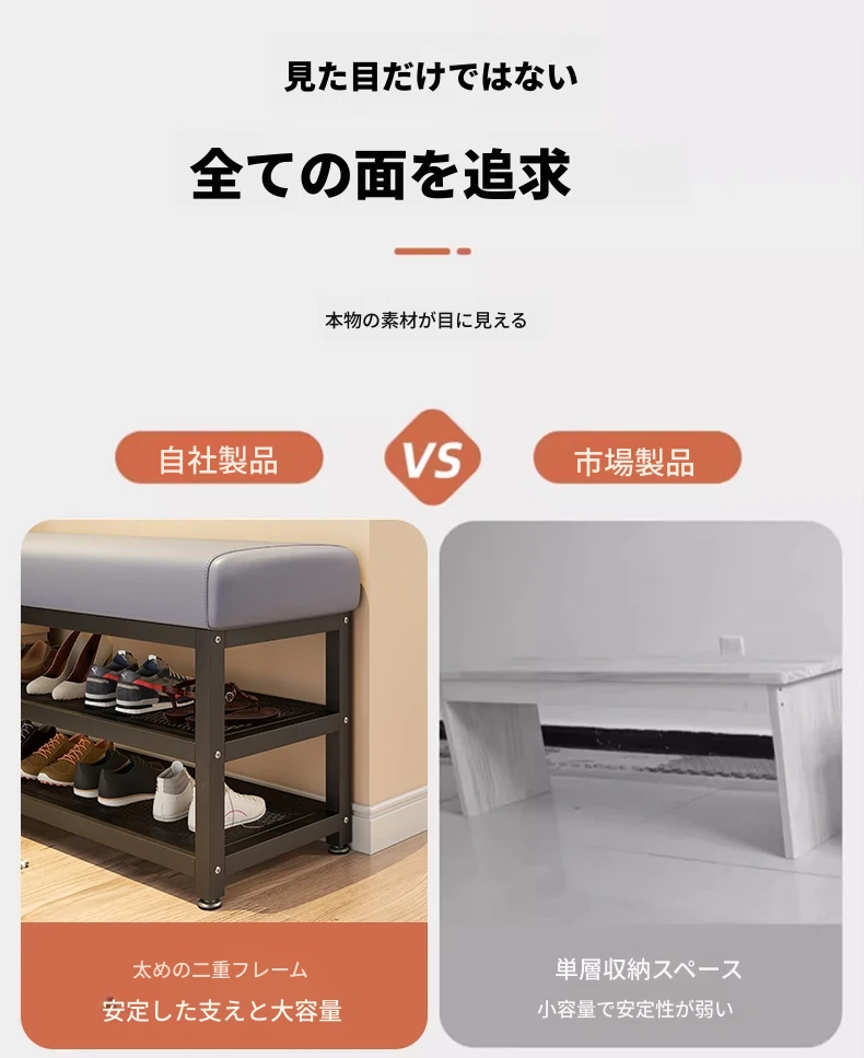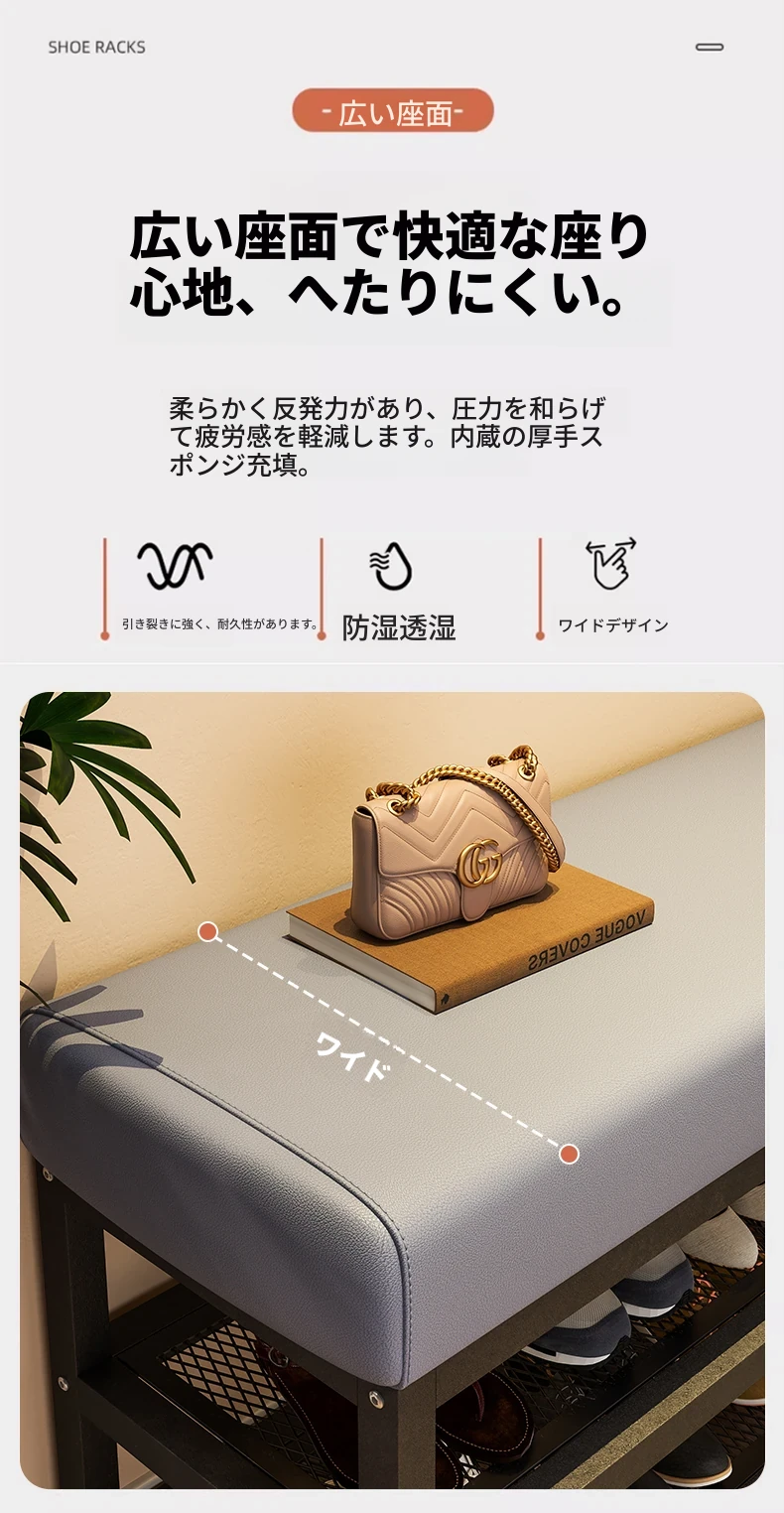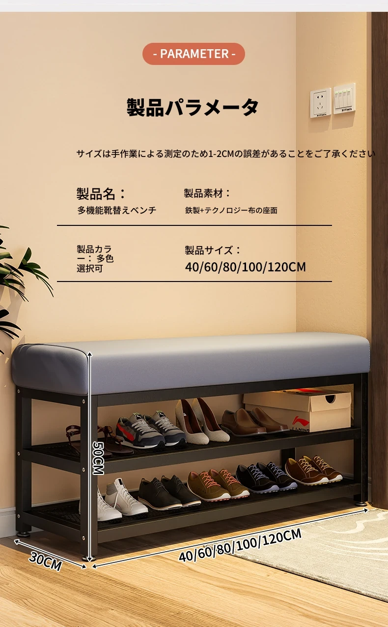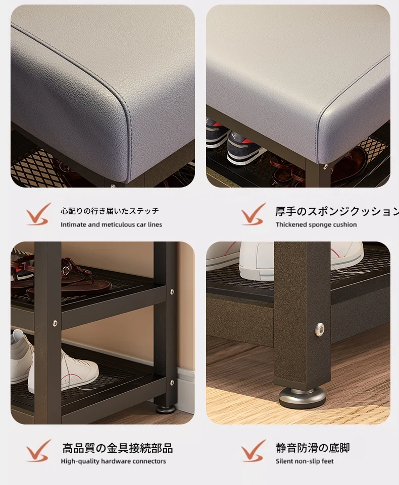 高級感漂うシンプルなデザインの玄関用スリッパベンチ!靴を履く際の便利な収納スペース付き。おしゃれな長方形のシューズラックで、家の入り口を洗練された雰囲気に演出します。座れる&収納できる便利さを兼ね備えたアイテムです!