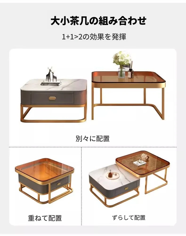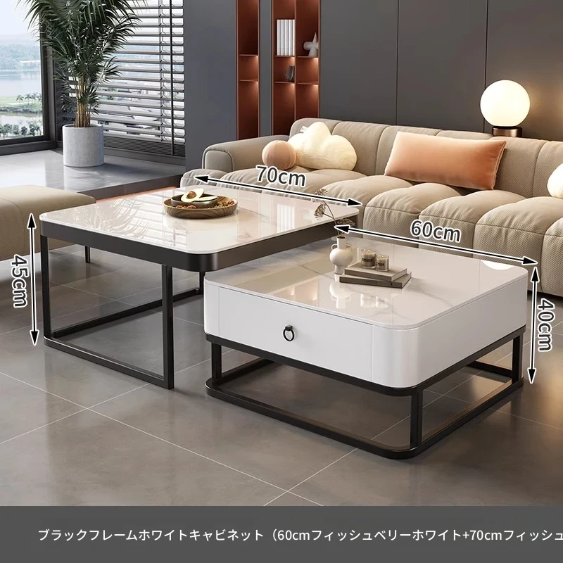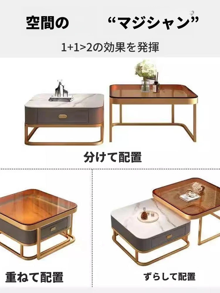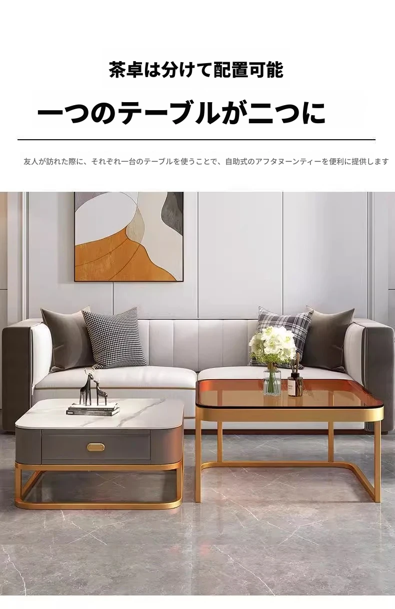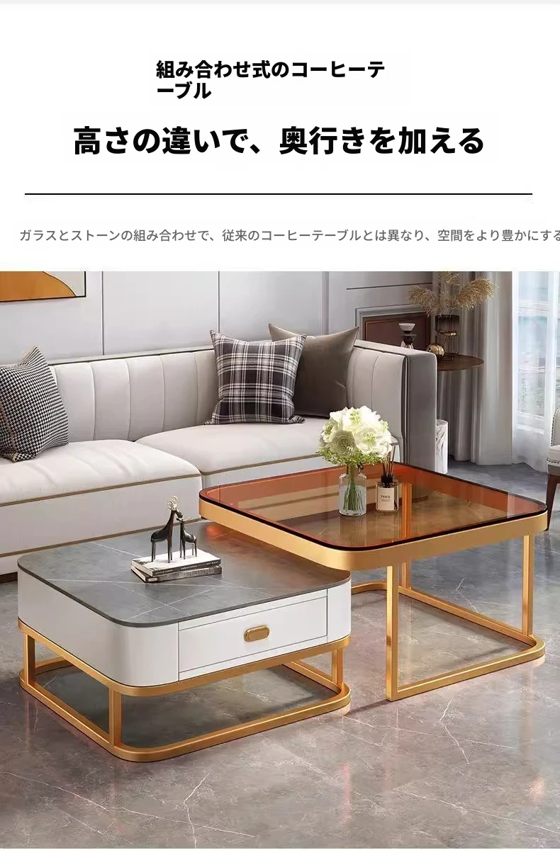 北欧風シンプルな岩板テーブル - モダンなガラス製の茶几、リビングルームに最適な小型コンボデザインで、軽やかなラグジュアリーを演出!