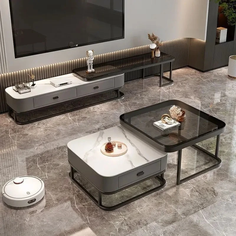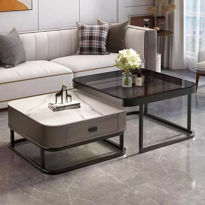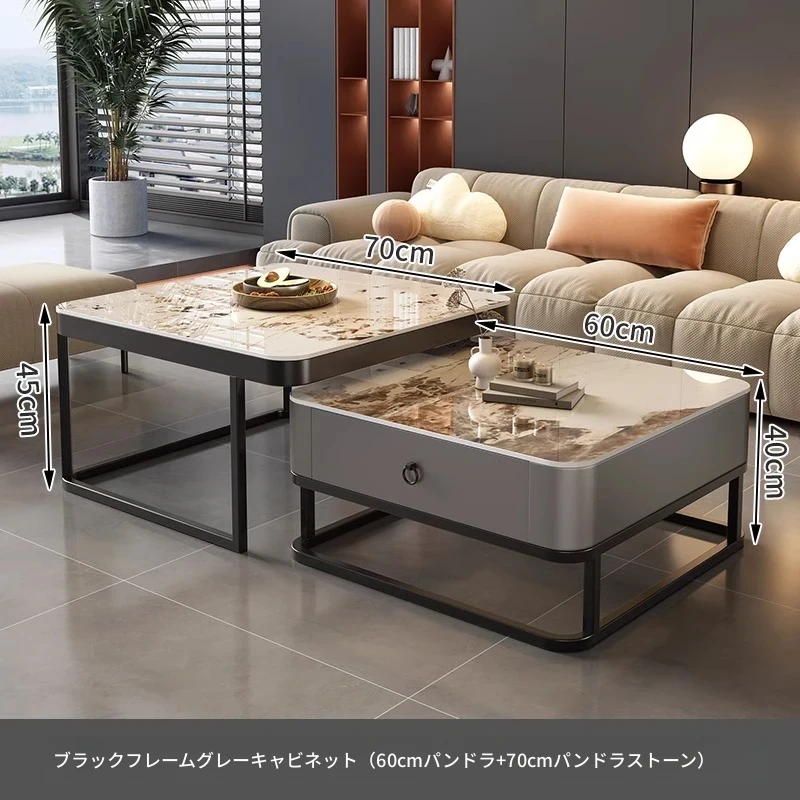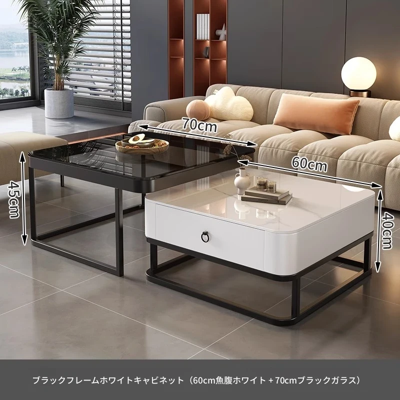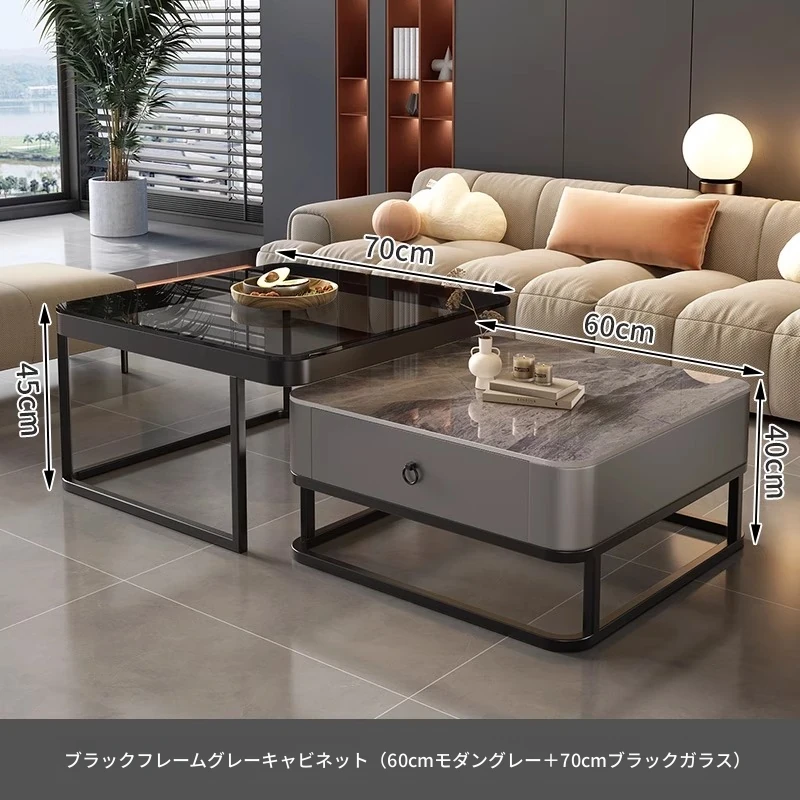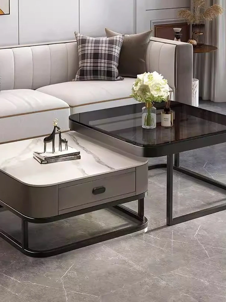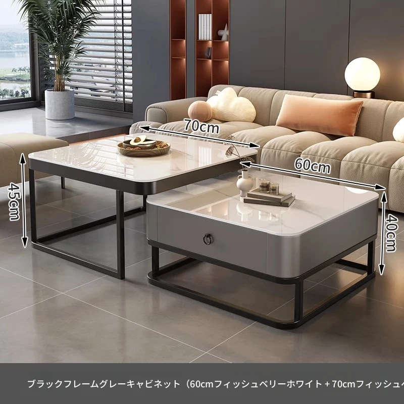 北欧風シンプルな岩板テーブル - モダンなガラス製の茶几、リビングルームに最適な小型コンボデザインで、軽やかなラグジュアリーを演出!