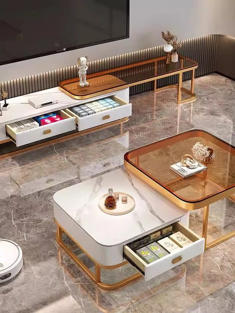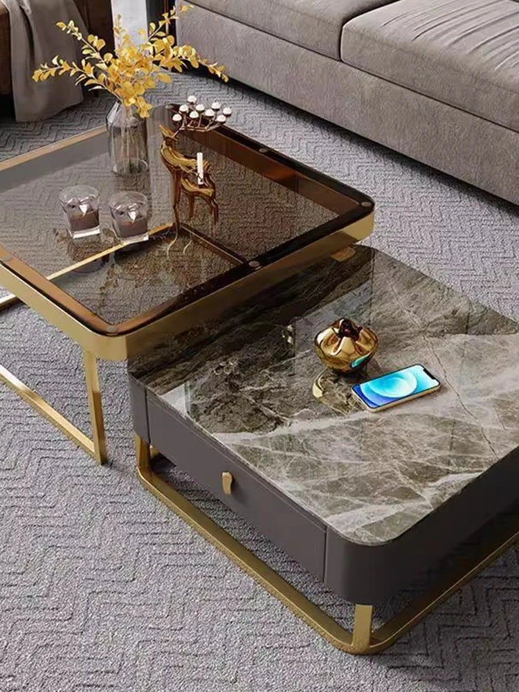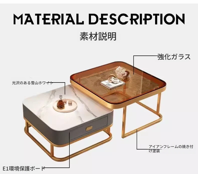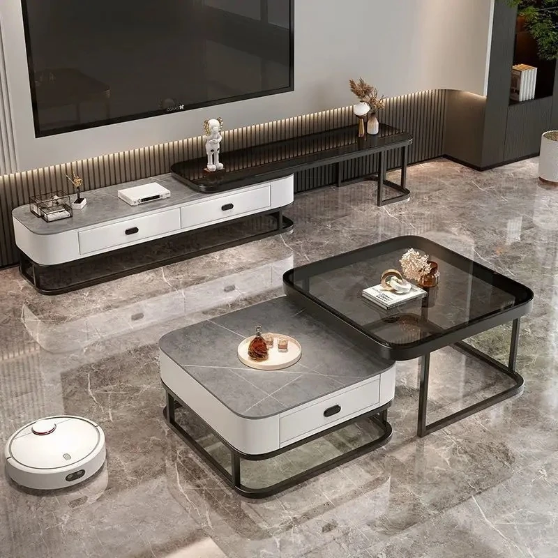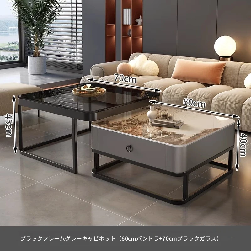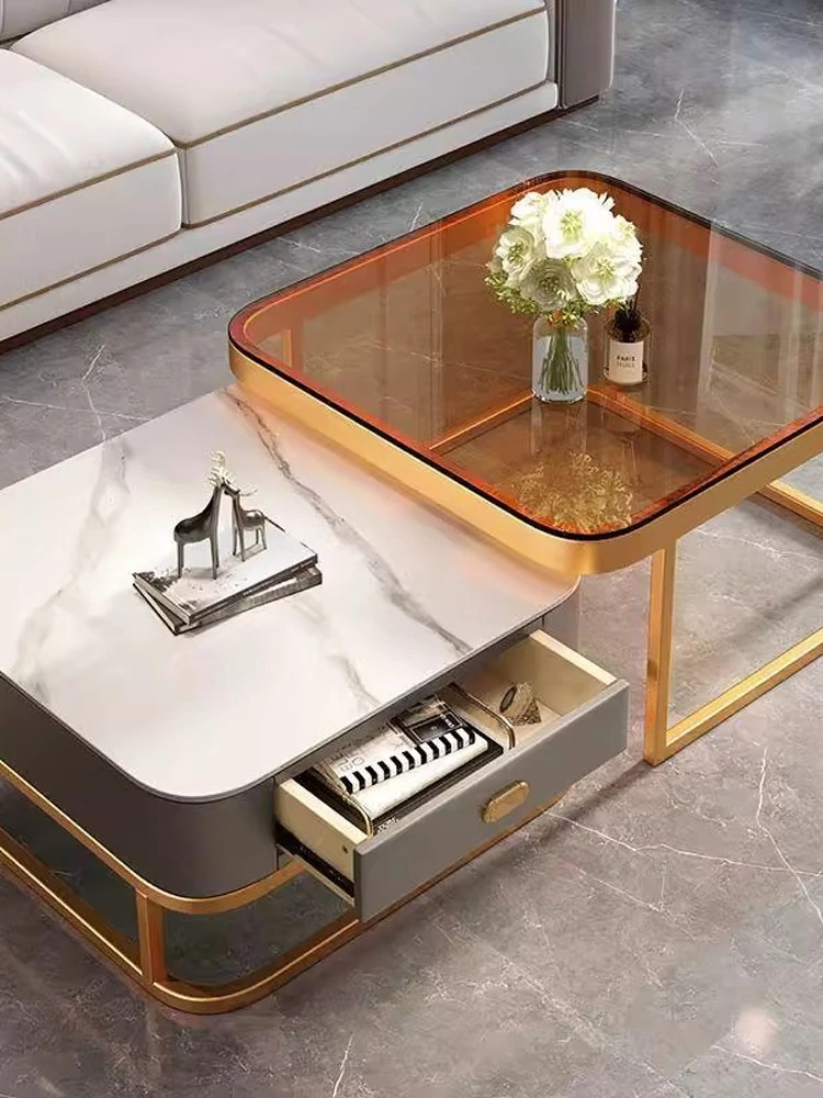 北欧風シンプルな岩板テーブル - モダンなガラス製の茶几、リビングルームに最適な小型コンボデザインで、軽やかなラグジュアリーを演出!