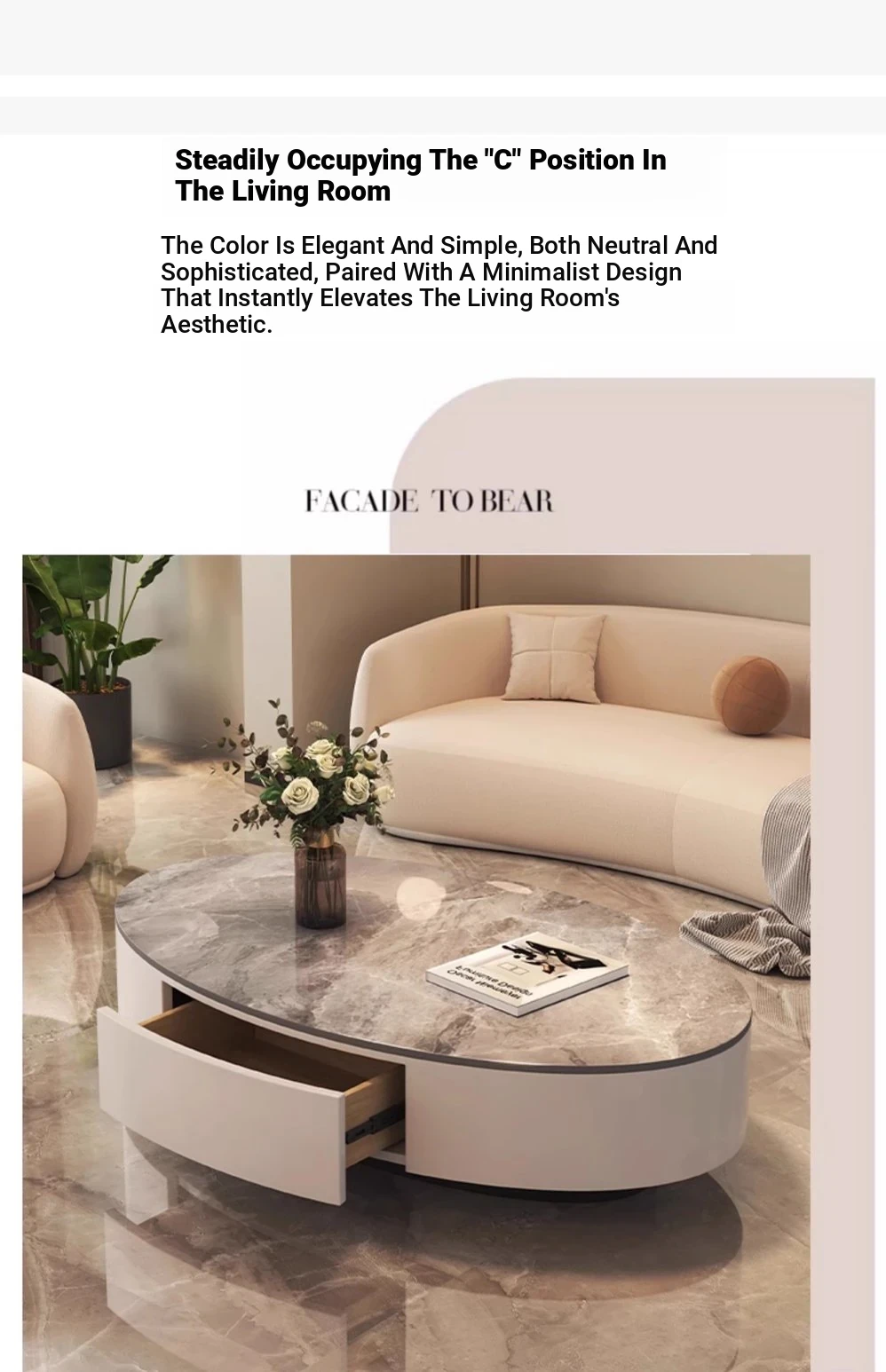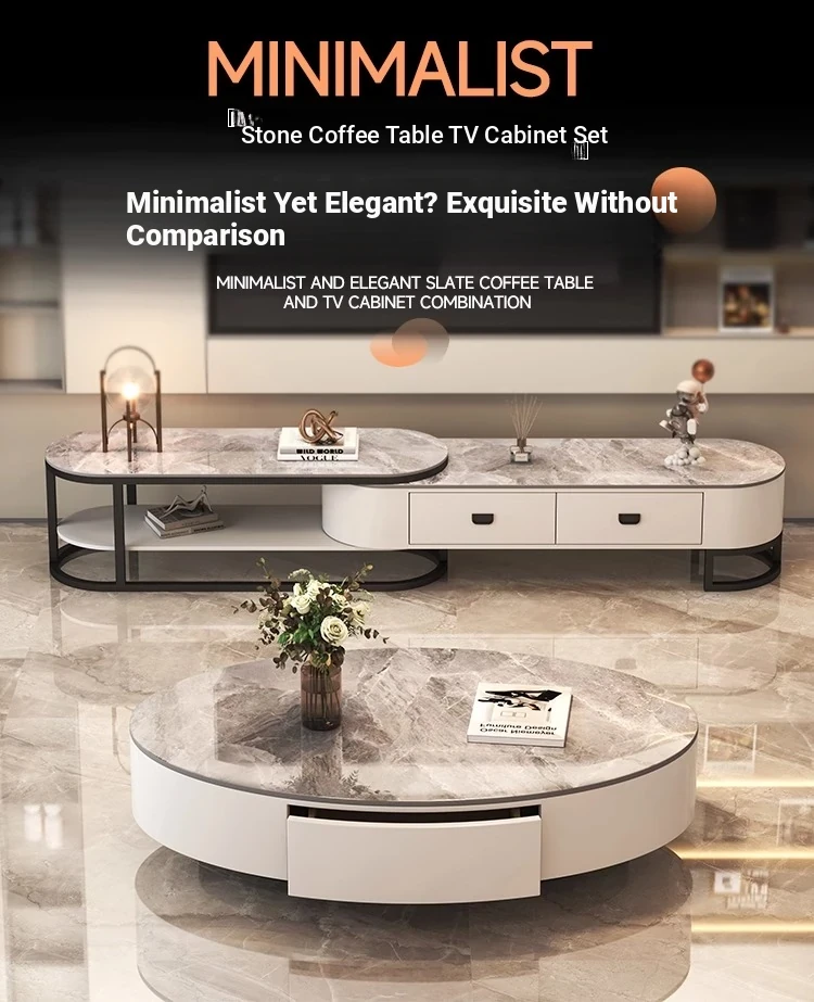 Modern Minimalist Coffee Table for Living Room - 2025 New Trend, Stylish and Elegant Rock Plate Design, Perfect for Small Spaces, Ideal for Home Decor.