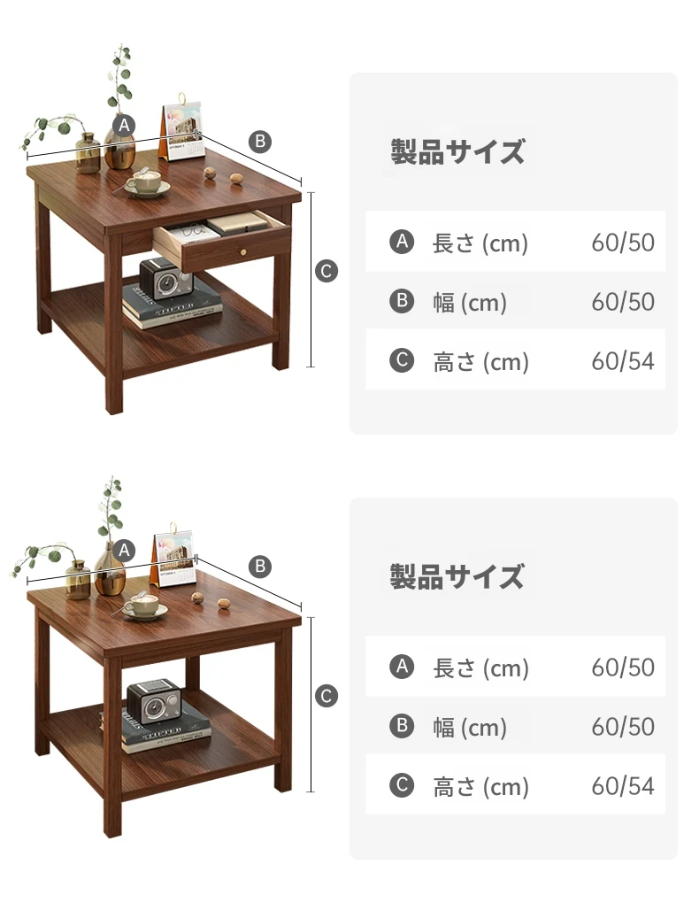 【無垢材の角脚★引き出し付き】浅胡桃色 60_60_60cm