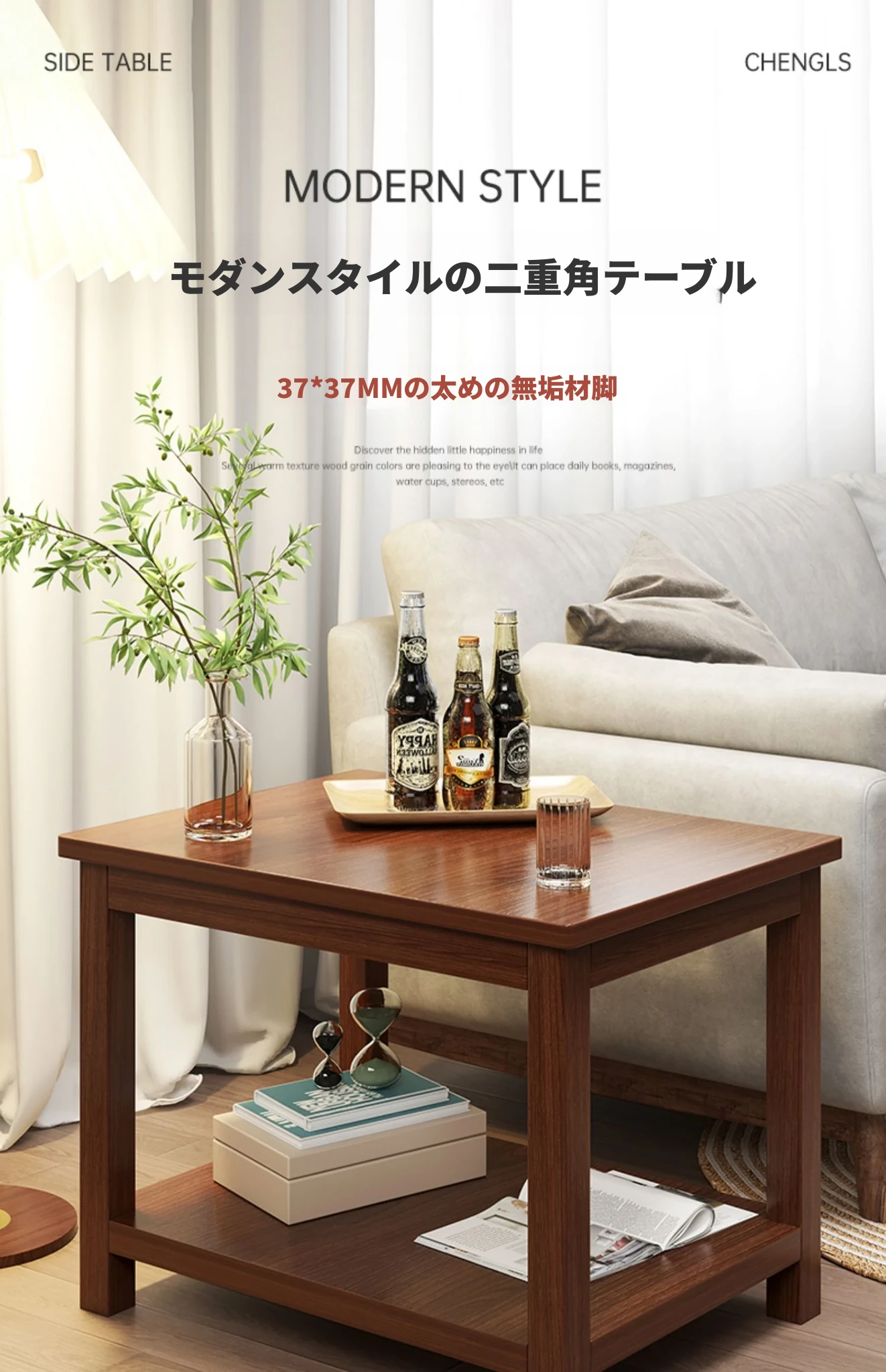 モダンシンプルなリビング用サイドテーブル - 家庭にぴったりの小型四角テーブル、寝室やバルコニーにも最適な簡易カフェテーブル、スタイリッシュなデザインでお部屋をおしゃれに演出!
