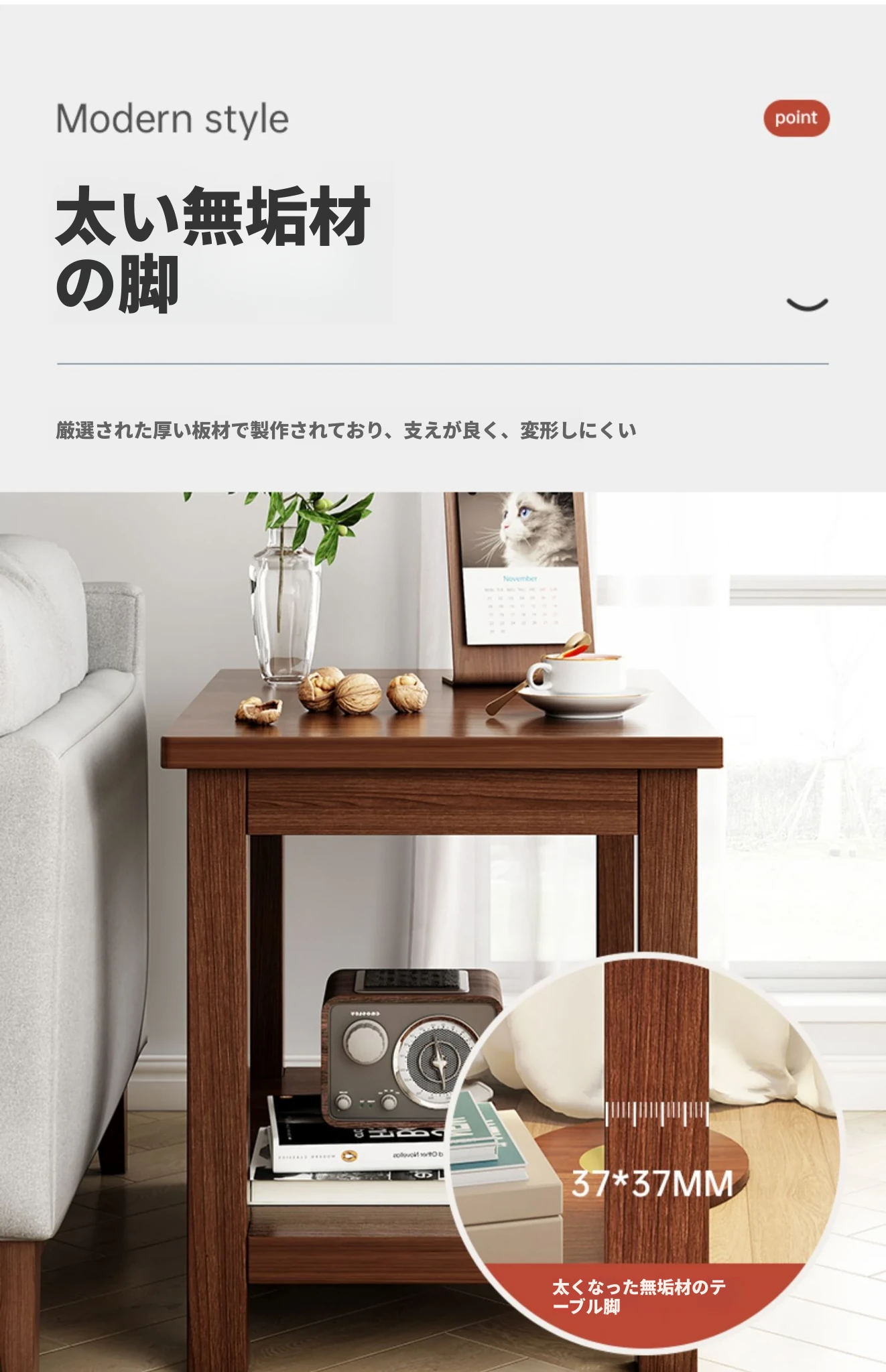 【無垢材の角脚】浅胡桃色 60_60_60cm