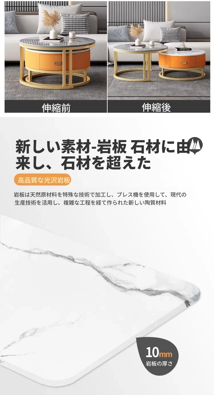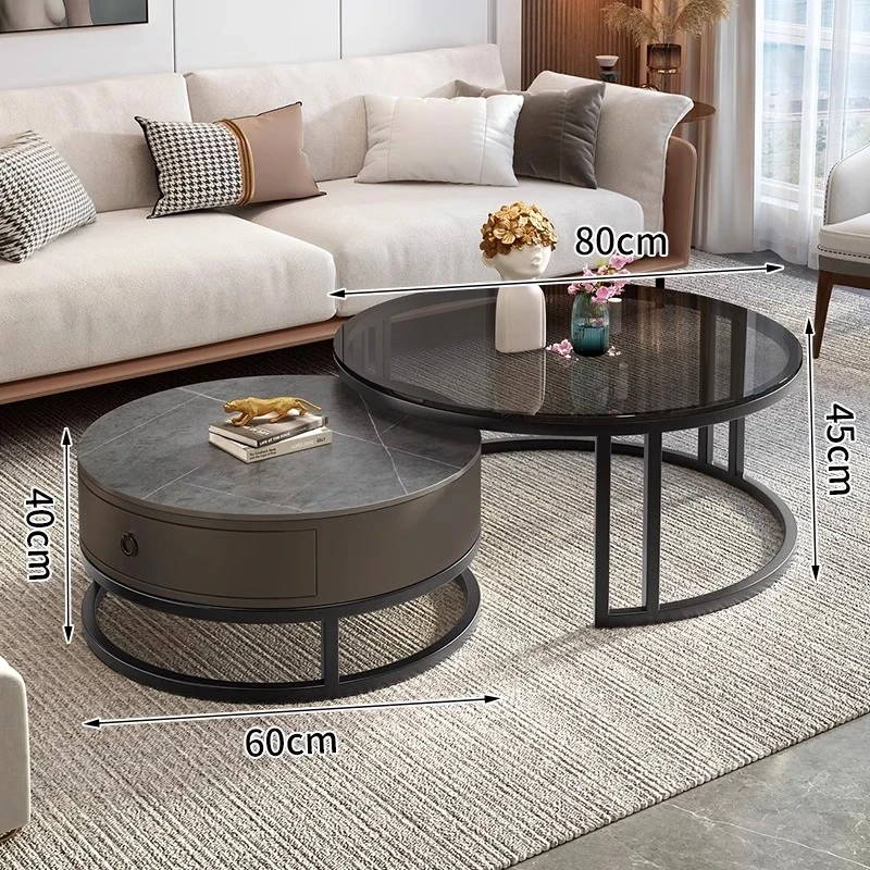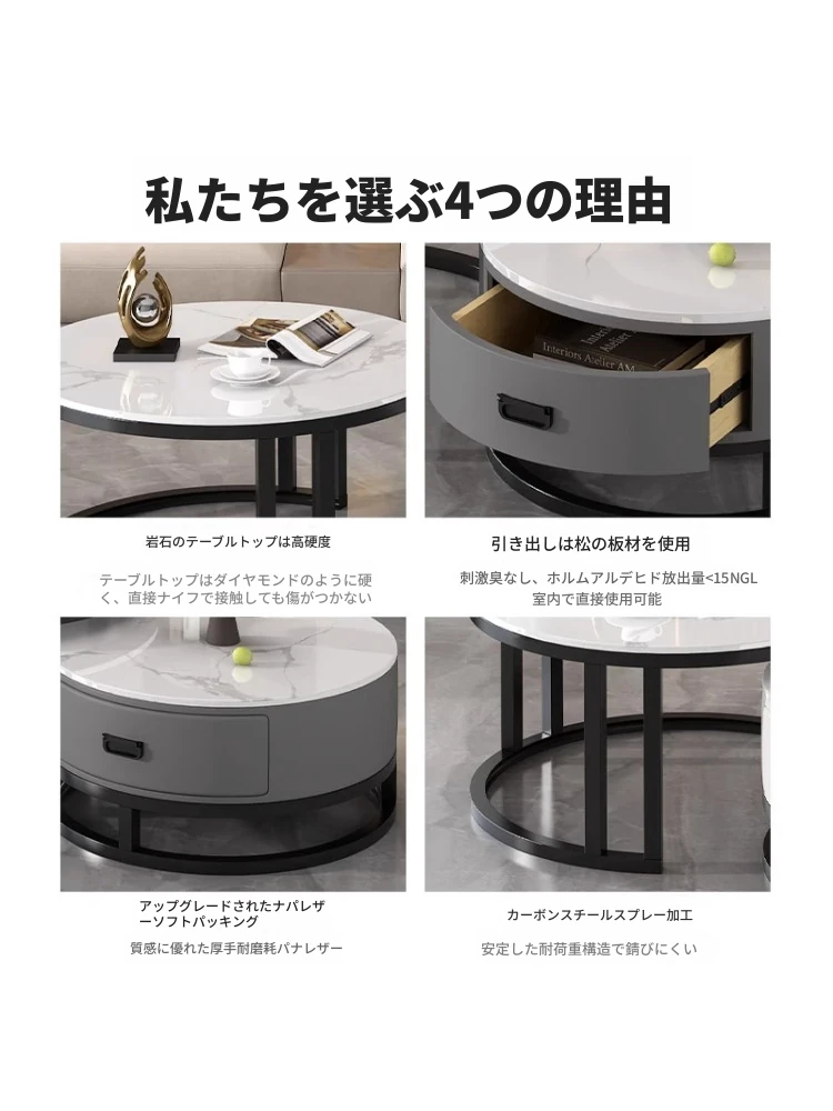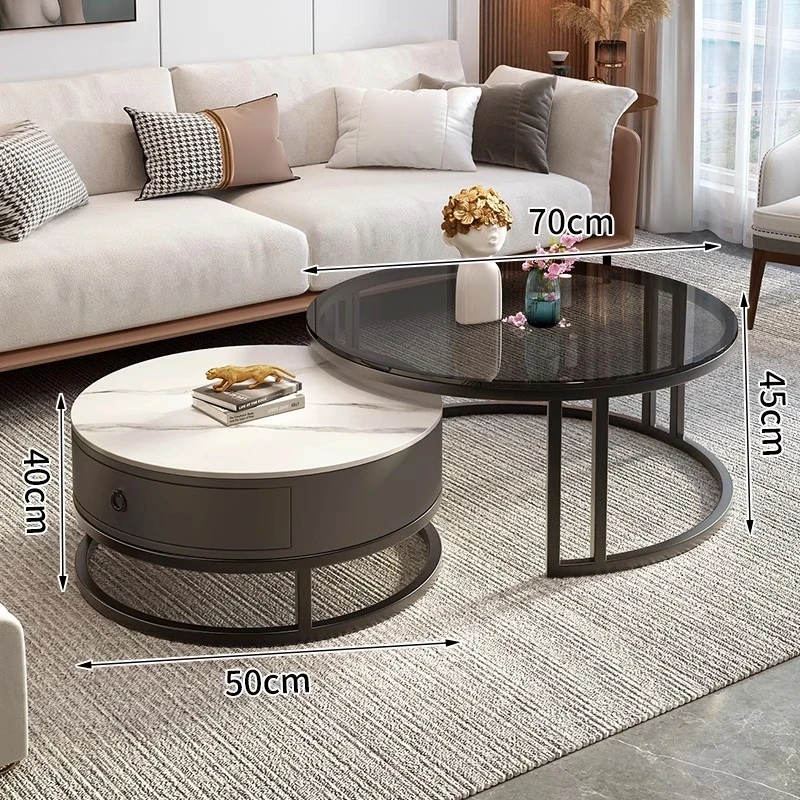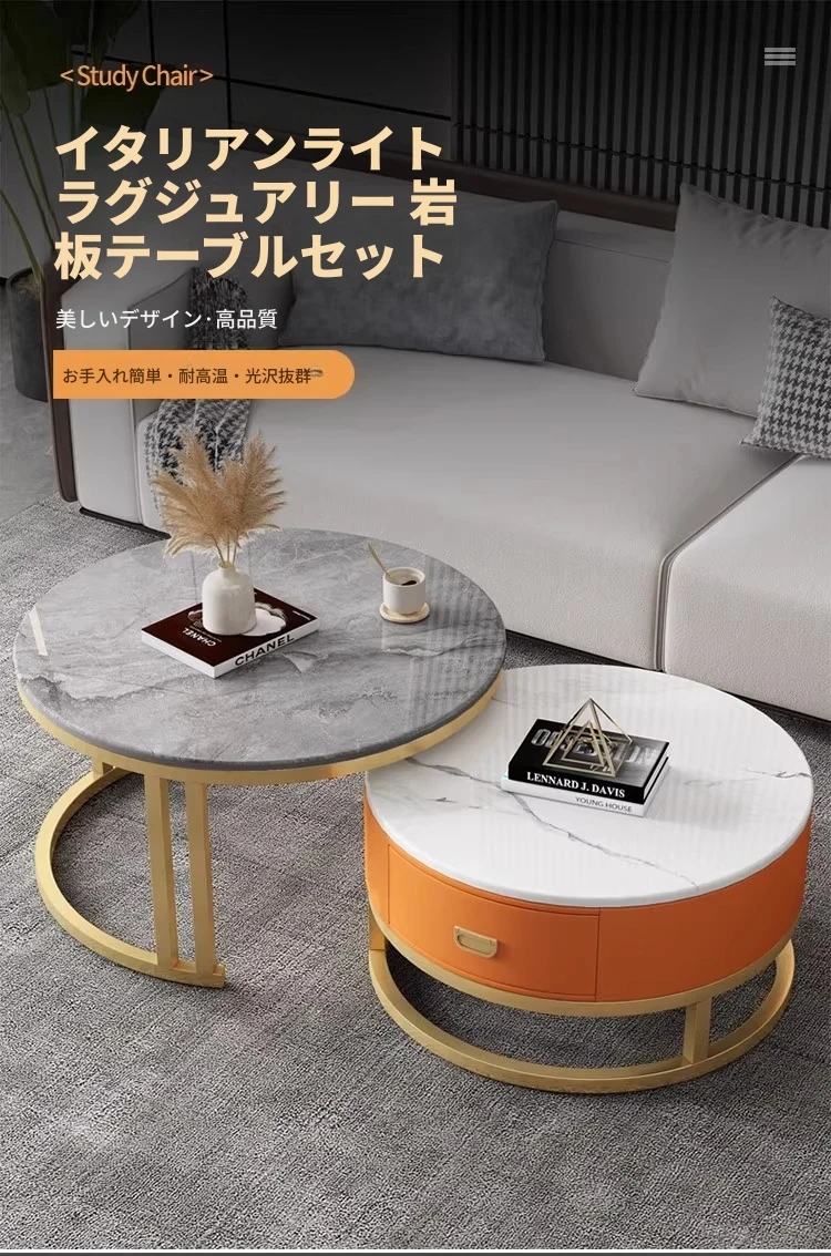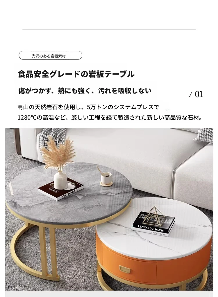 モダンな丸型サイドテーブル - 小さなリビングにぴったり!岩板とガラスのコンビネーションでスタイリッシュなデザイン。ミニサイズでスペースを有効活用し、素敵なカフェ気分を演出します。