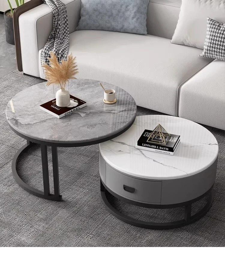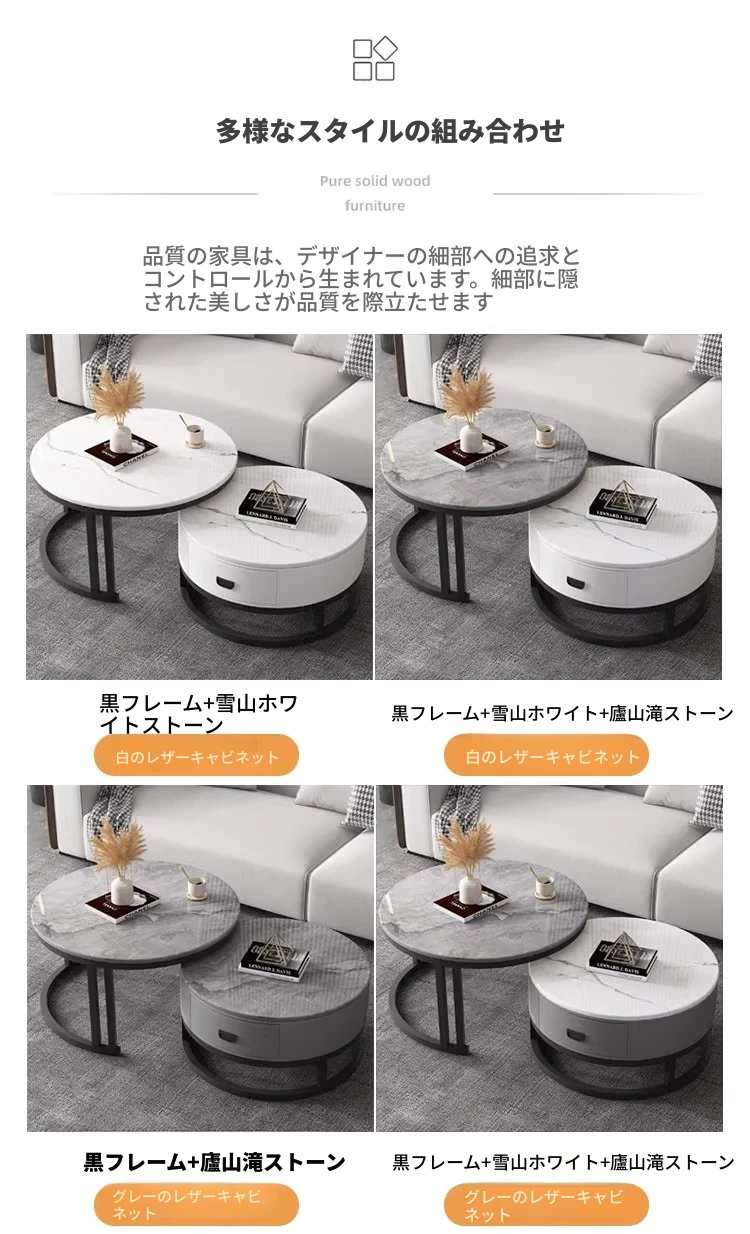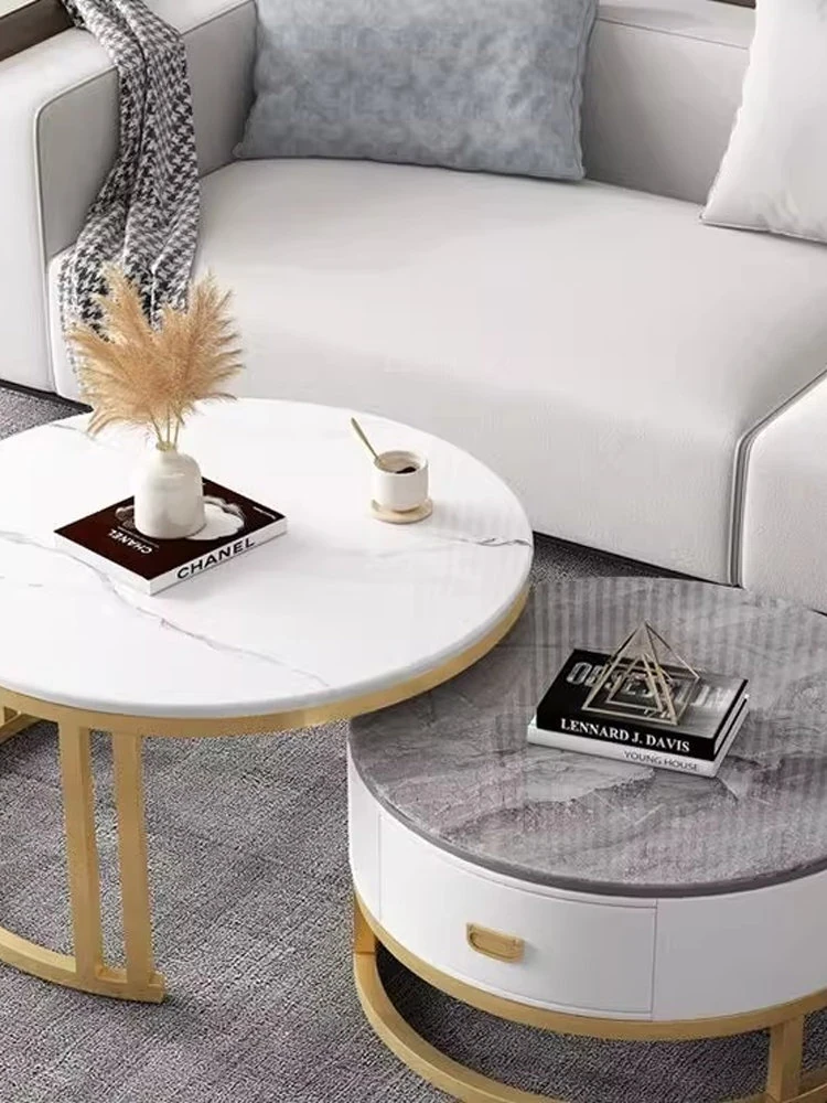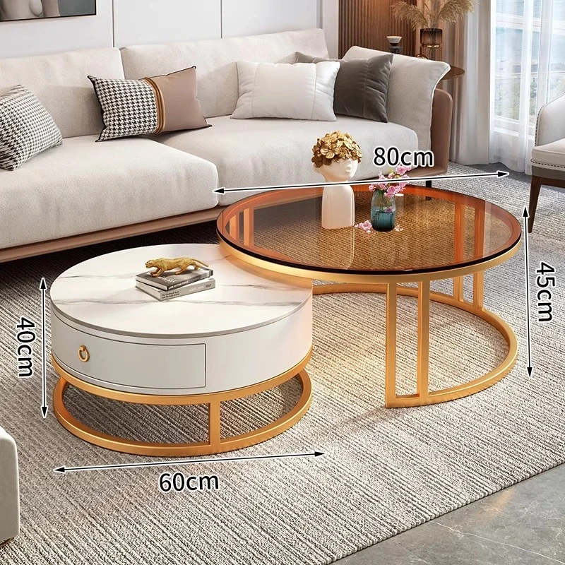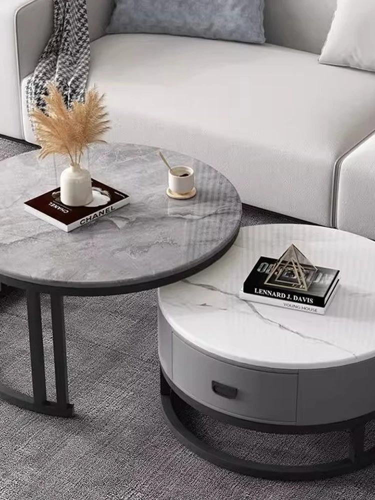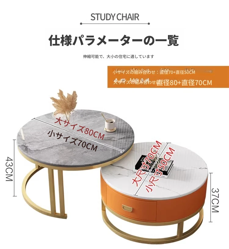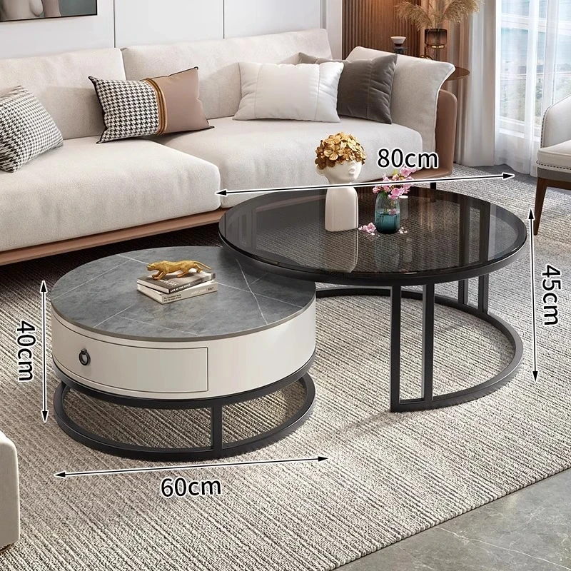 モダンな丸型サイドテーブル - 小さなリビングにぴったり!岩板とガラスのコンビネーションでスタイリッシュなデザイン。ミニサイズでスペースを有効活用し、素敵なカフェ気分を演出します。