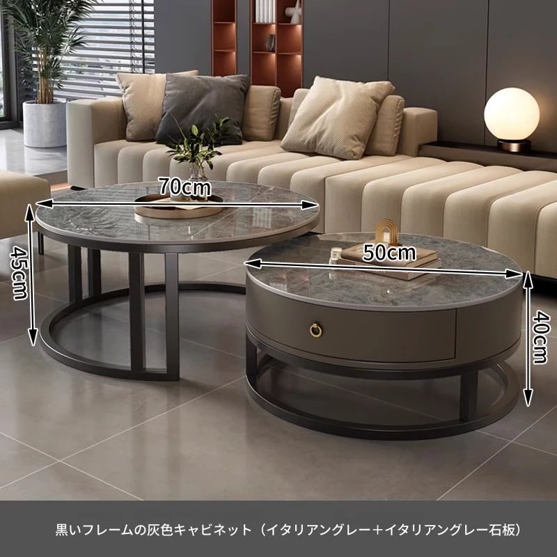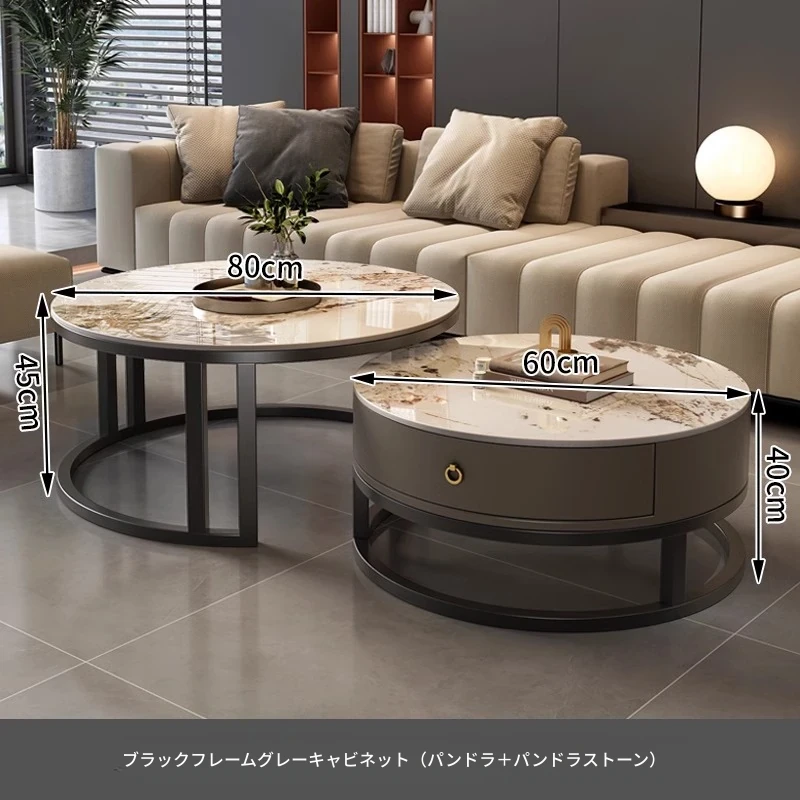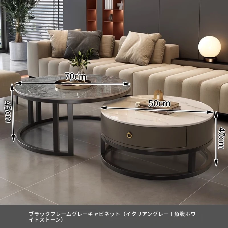 【引き出し付き⭐黒フレームグレーキャビネット】50アーマーニーグレー石板+70黒色ガラス