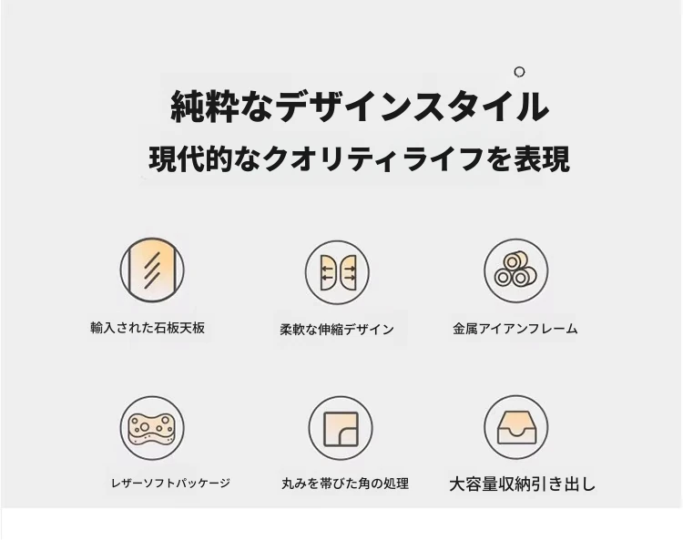 【引き出し付き⭐ブラックフレームホワイトキャビネット】60アーマーニグレー岩板+80ブラックガラス