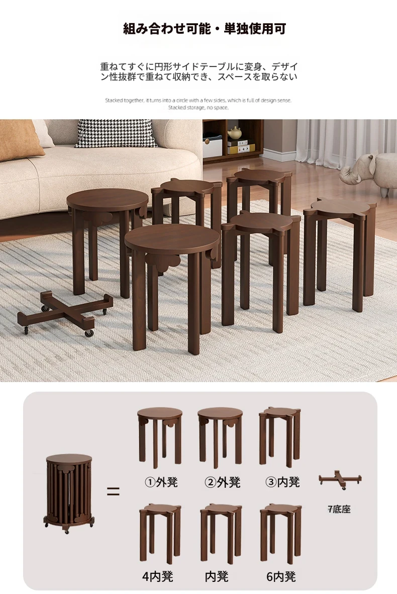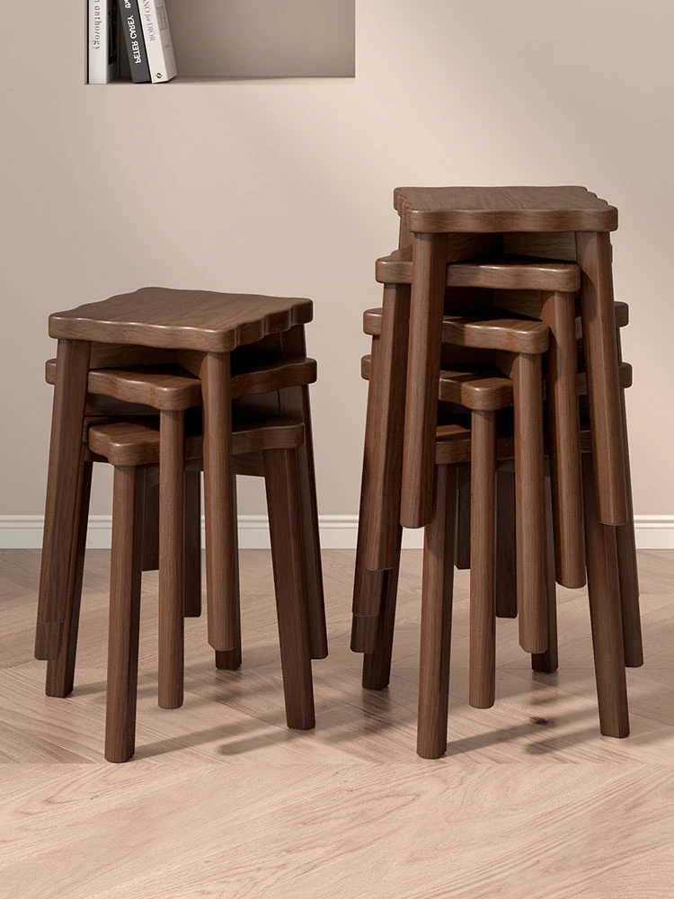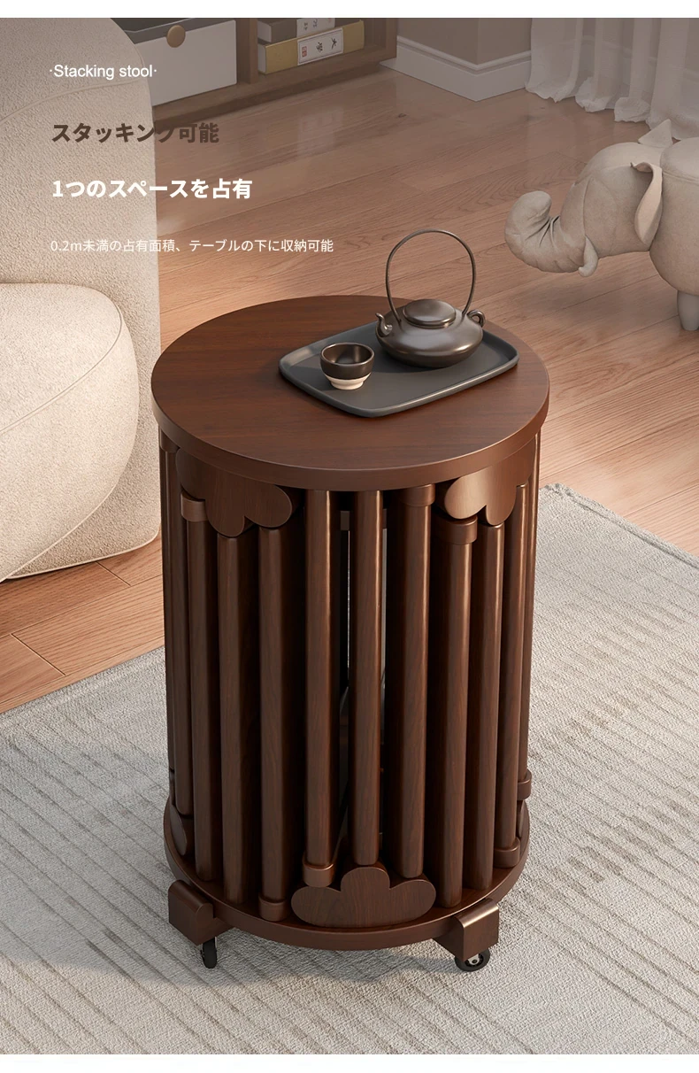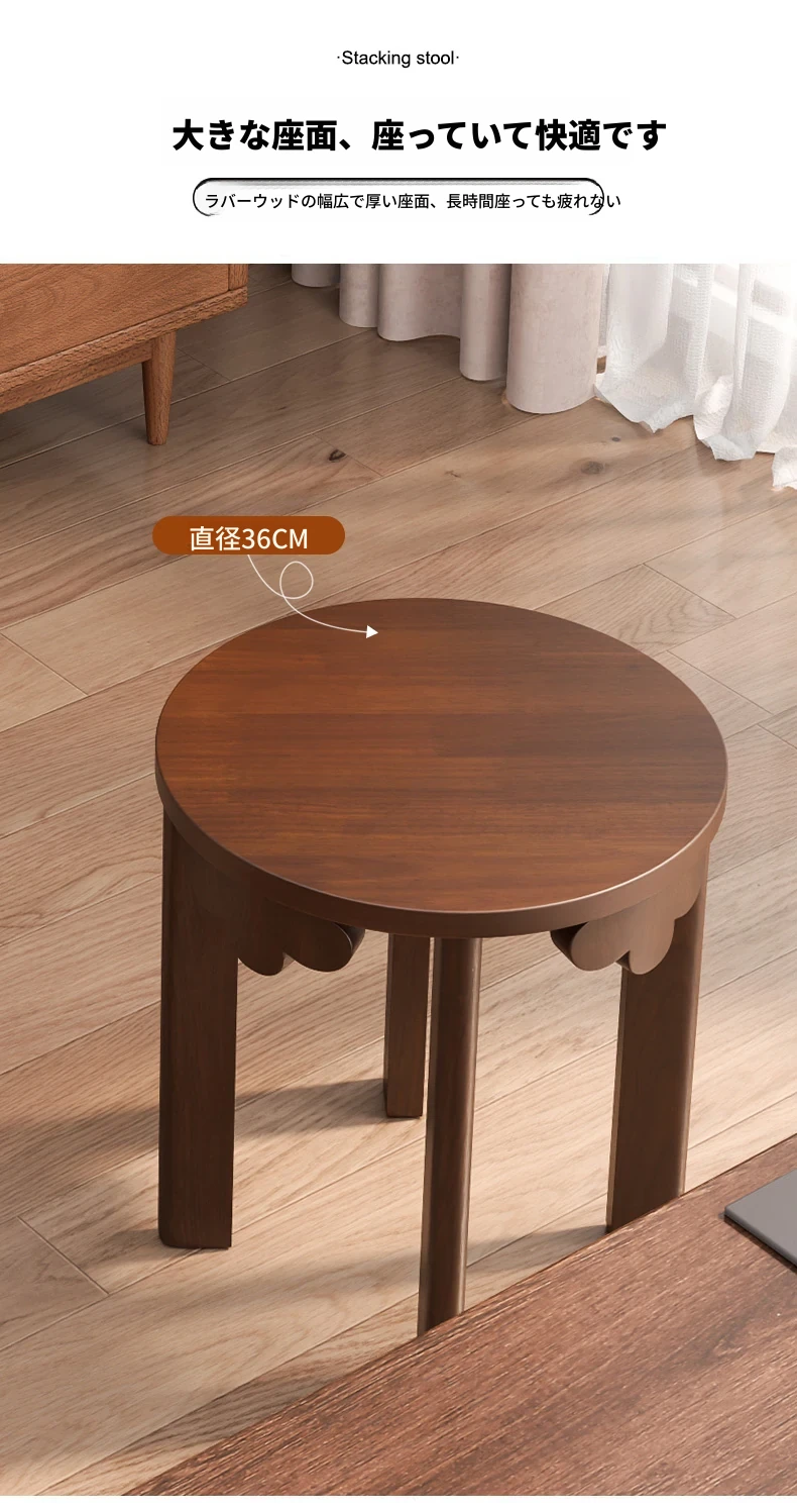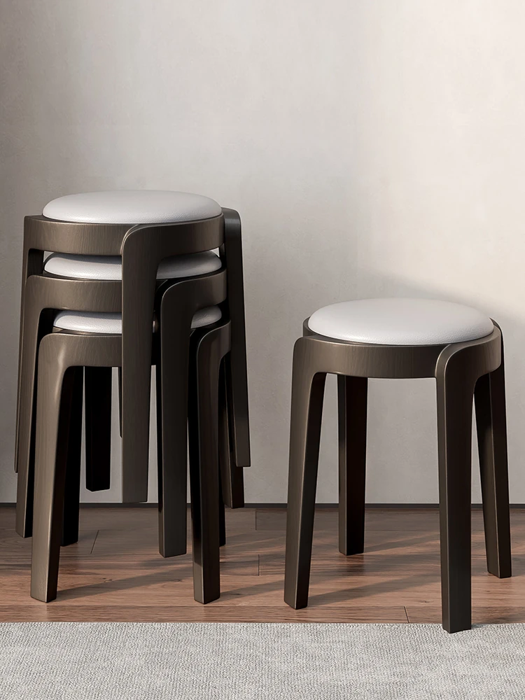 現代的な木製ダイニングスツール - 丸型デザインでおしゃれな食卓を演出!家庭用に最適なスタッキング可能なスツール。新中式のテイストで、シンプルながらも洗練された雰囲気を提供します。