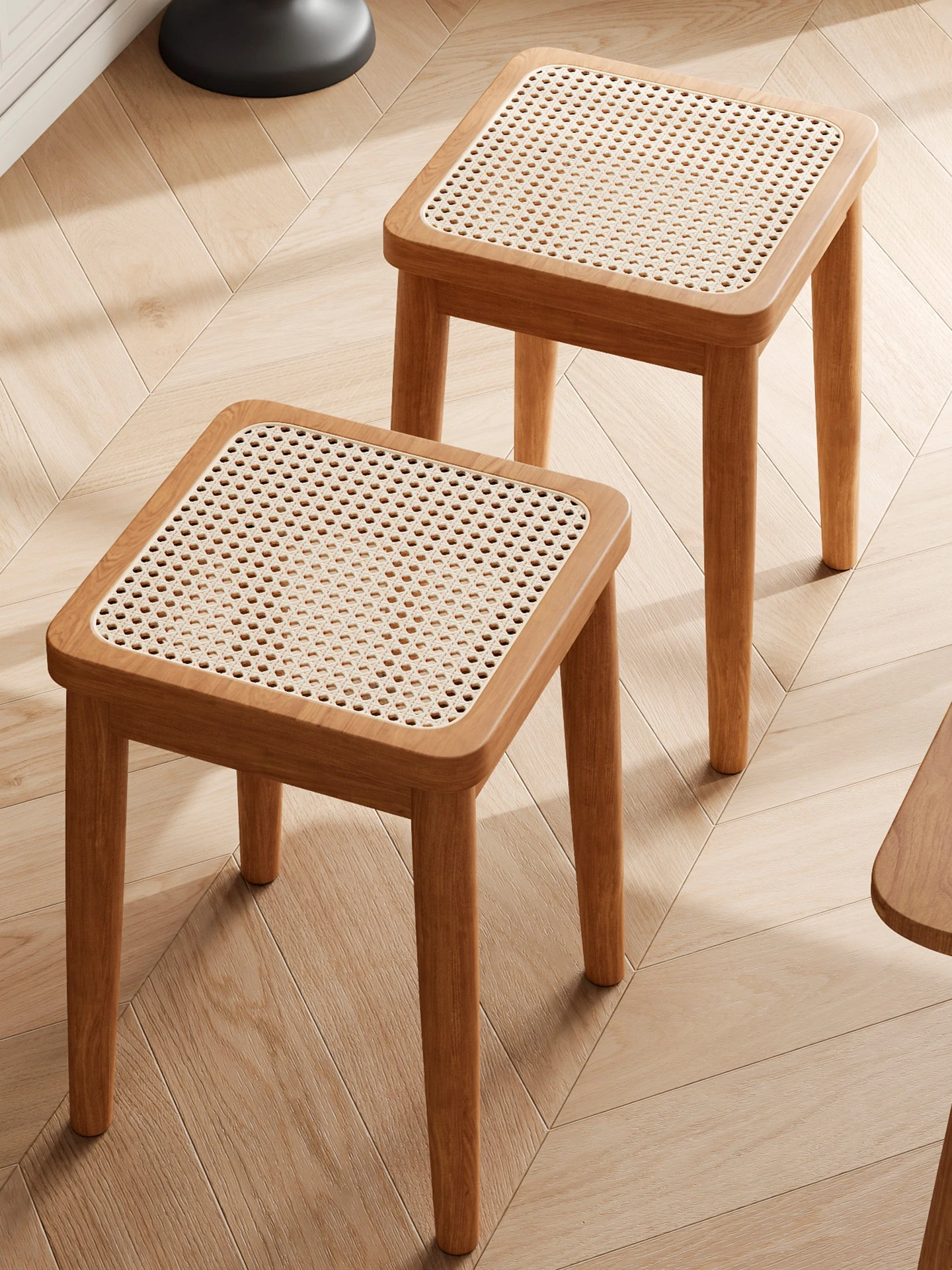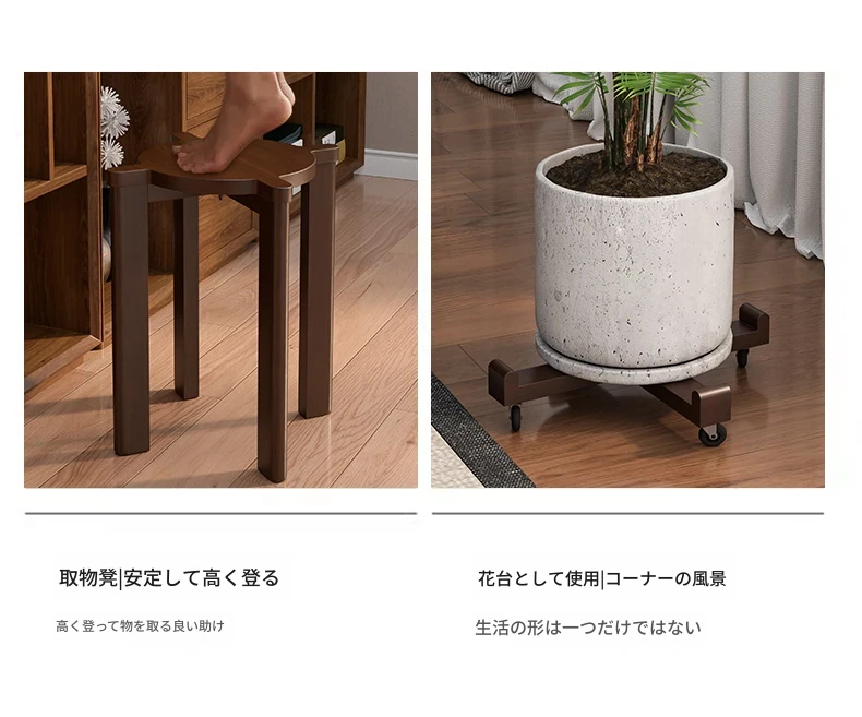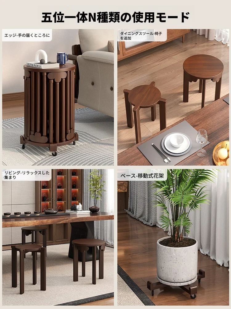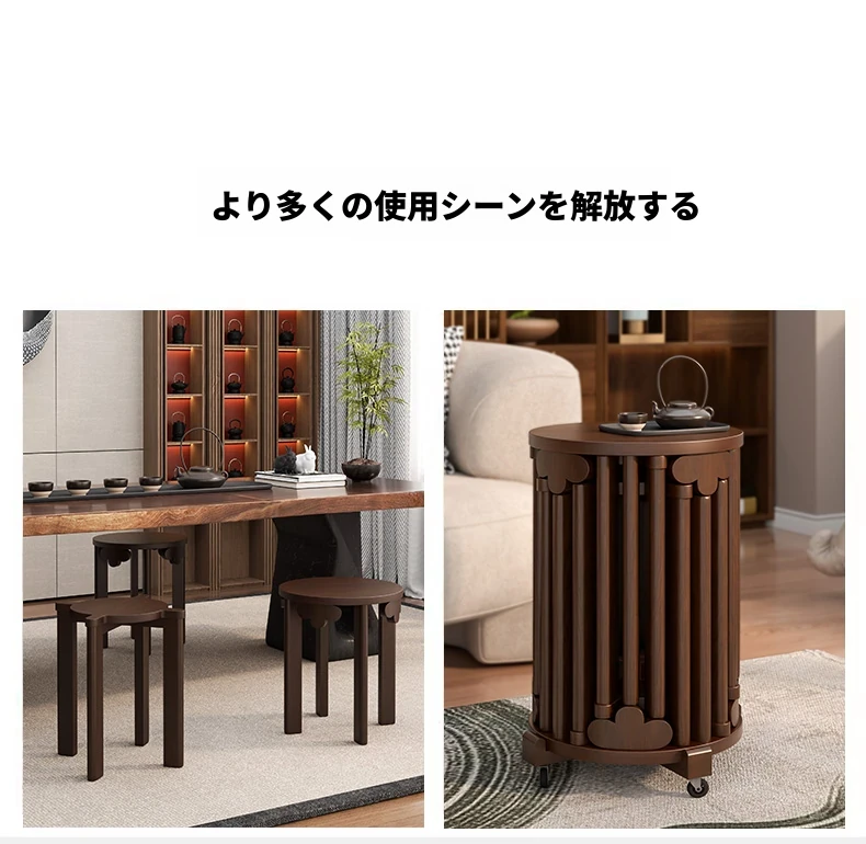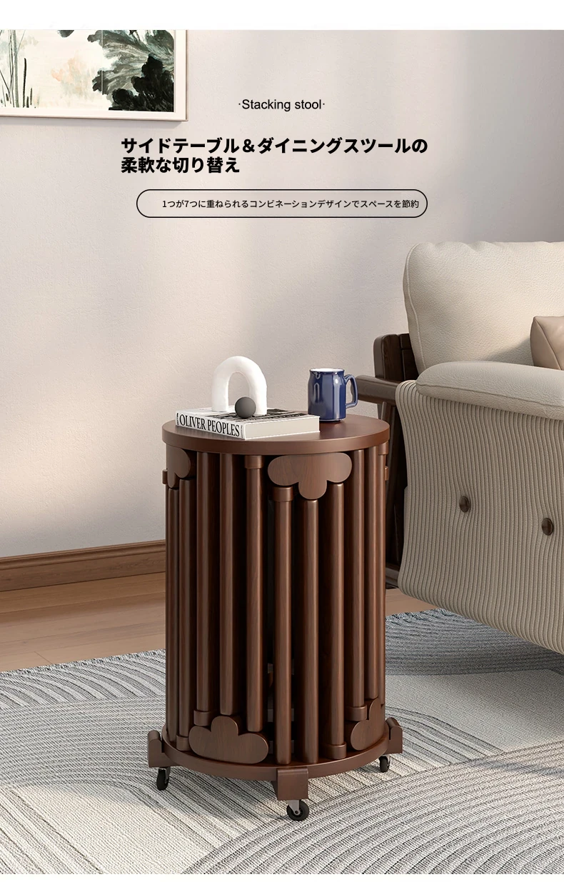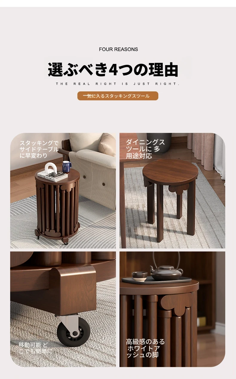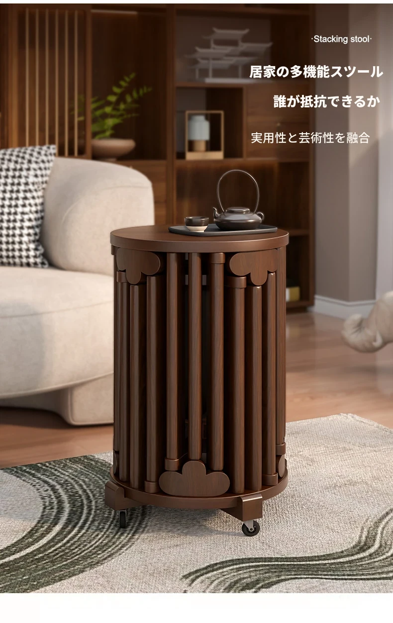 現代的な木製ダイニングスツール - 丸型デザインでおしゃれな食卓を演出!家庭用に最適なスタッキング可能なスツール。新中式のテイストで、シンプルながらも洗練された雰囲気を提供します。