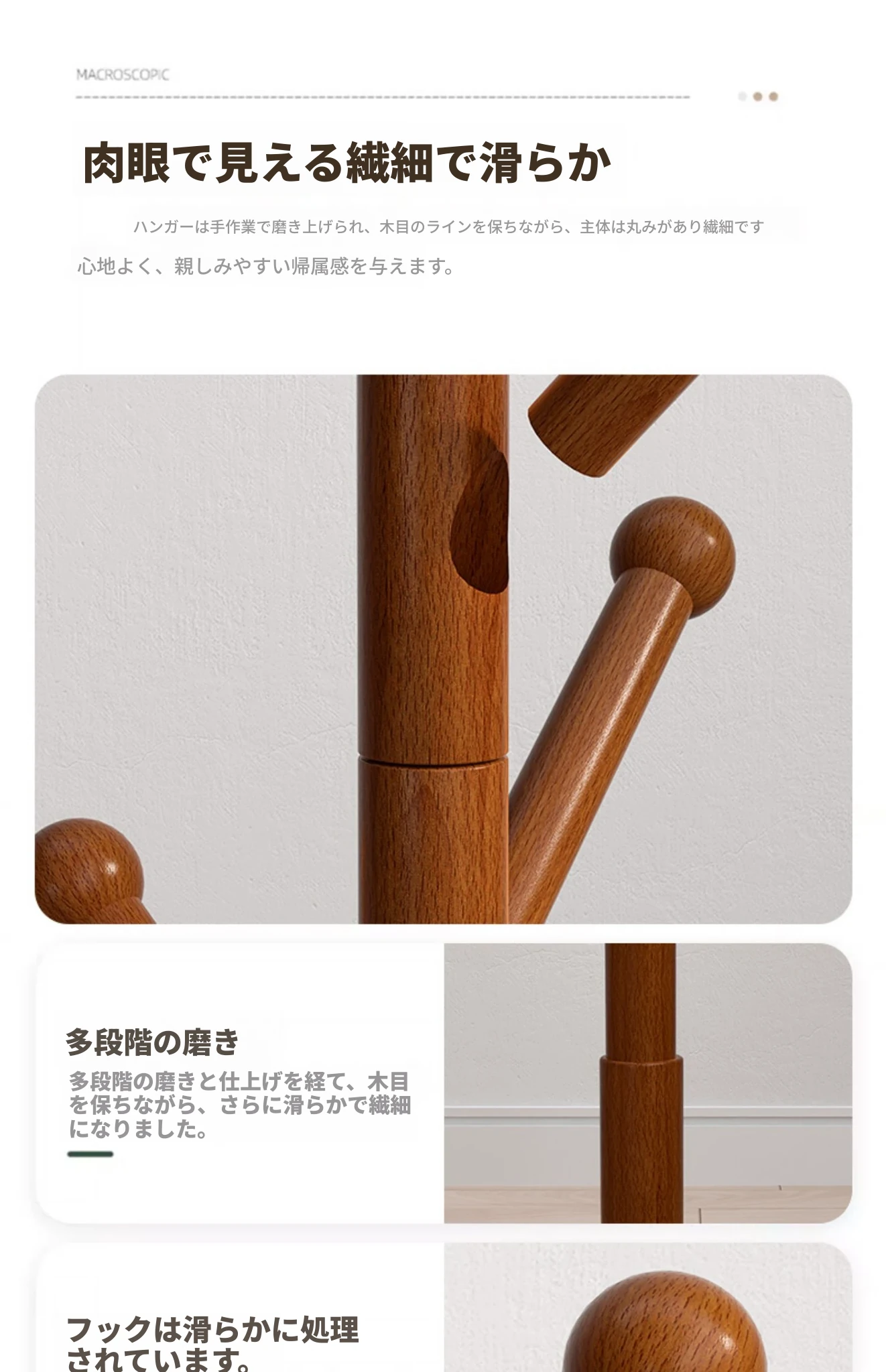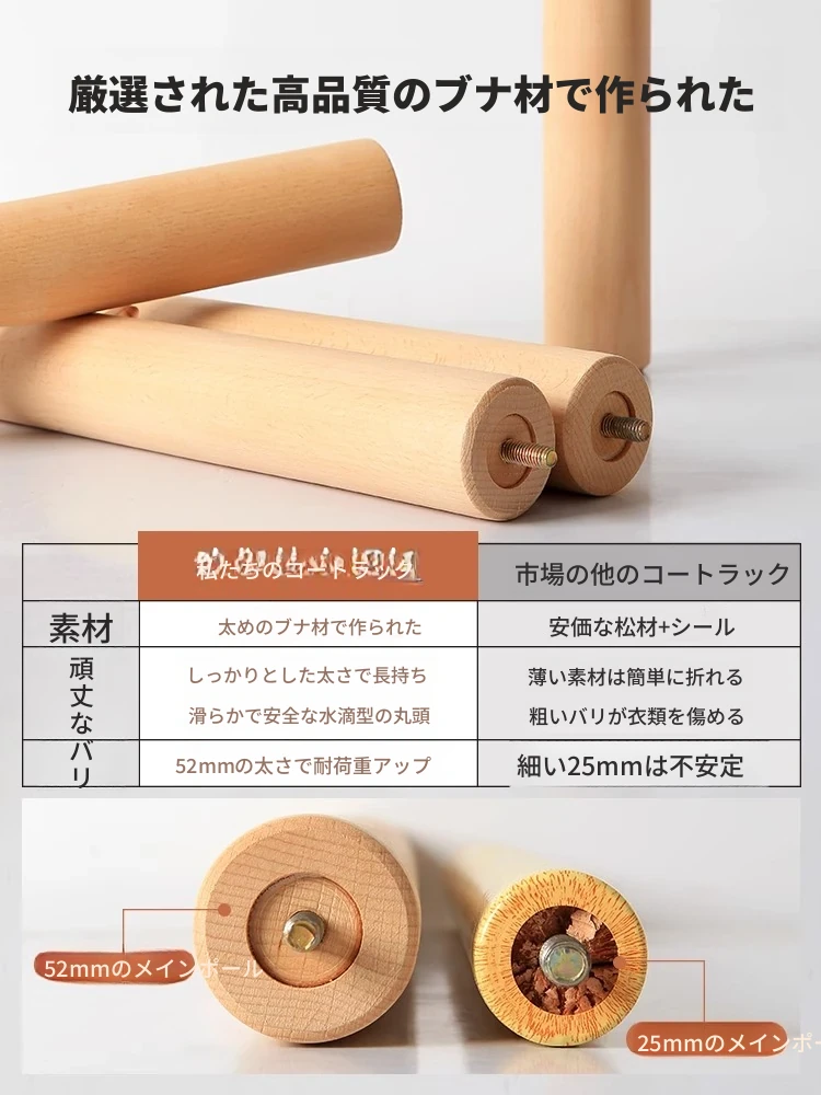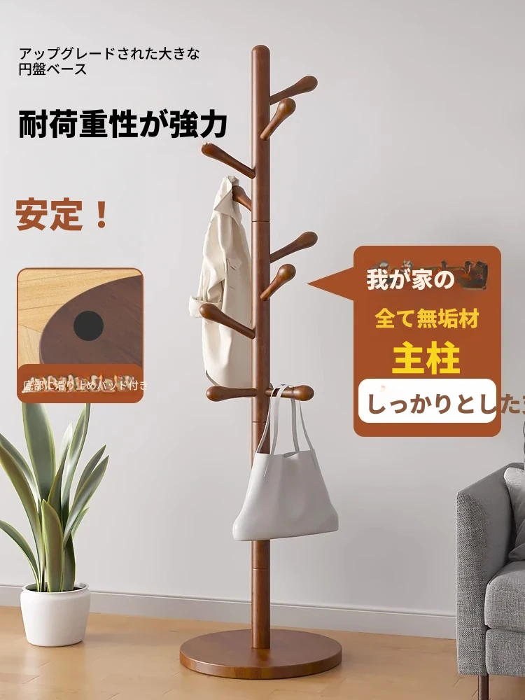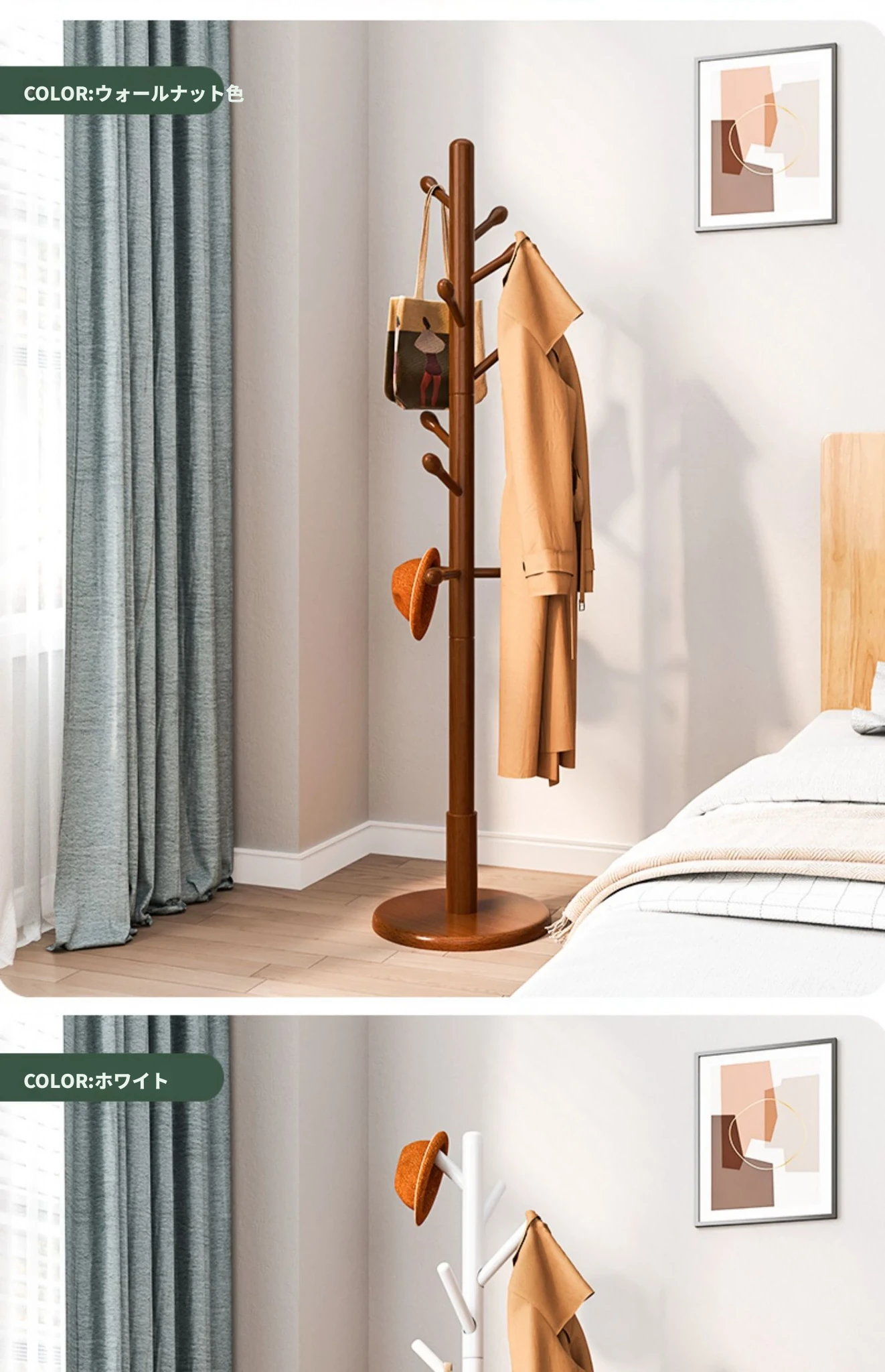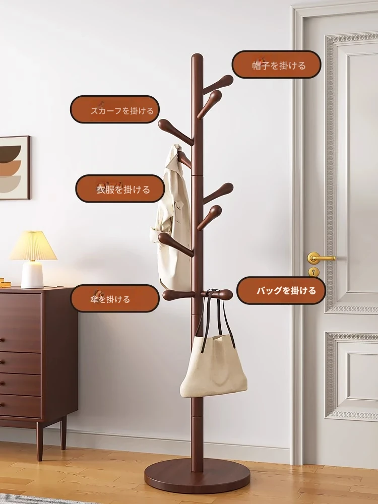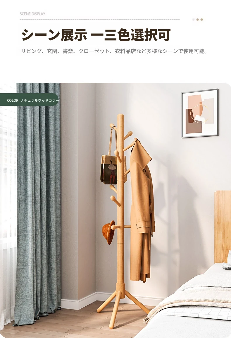 天然木製のスタンド型ハンガーラック - おしゃれな衣類&帽子掛け! シンプルなデザインで、寝室や大学の寮にもぴったり。丈夫なブナ材で、バッグも掛けられる多機能スタンド!お部屋をスッキリ整理整頓。