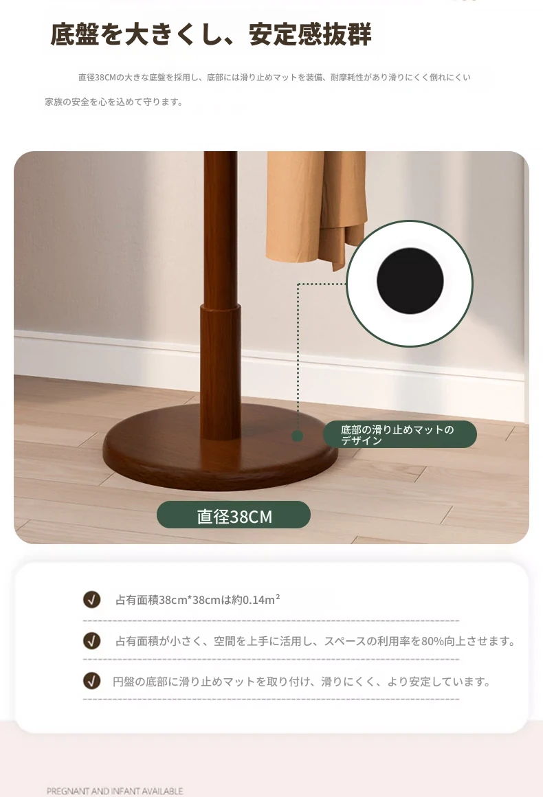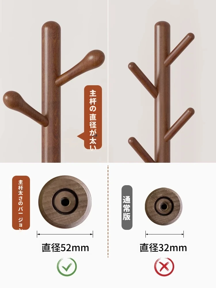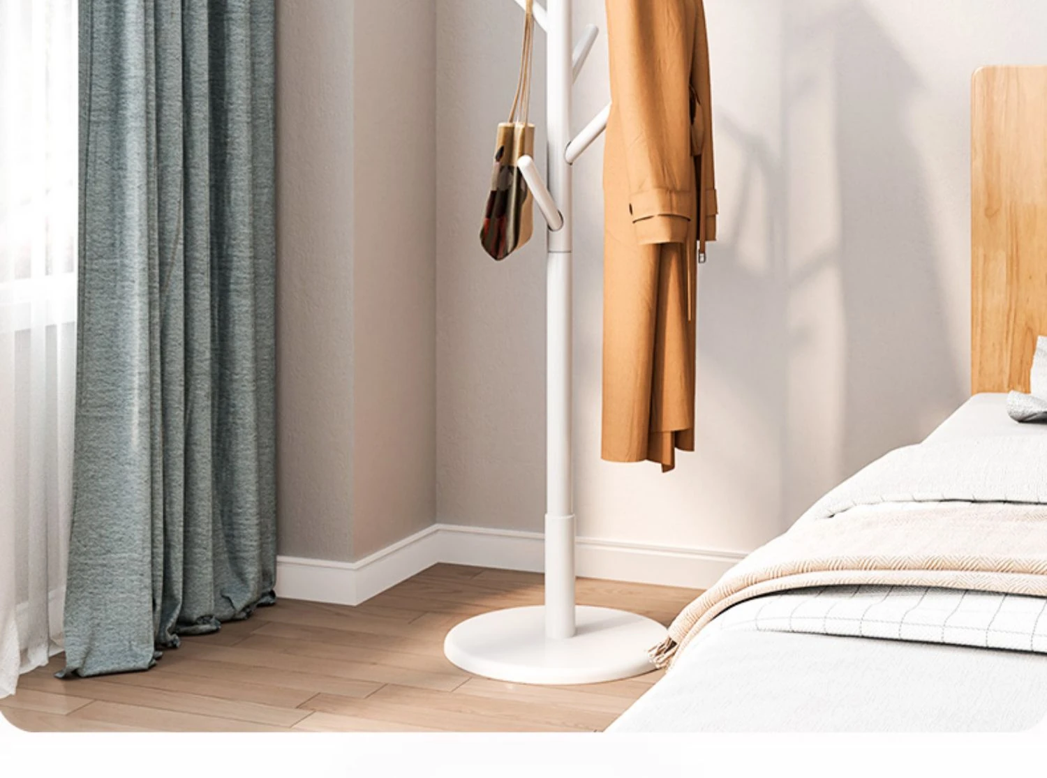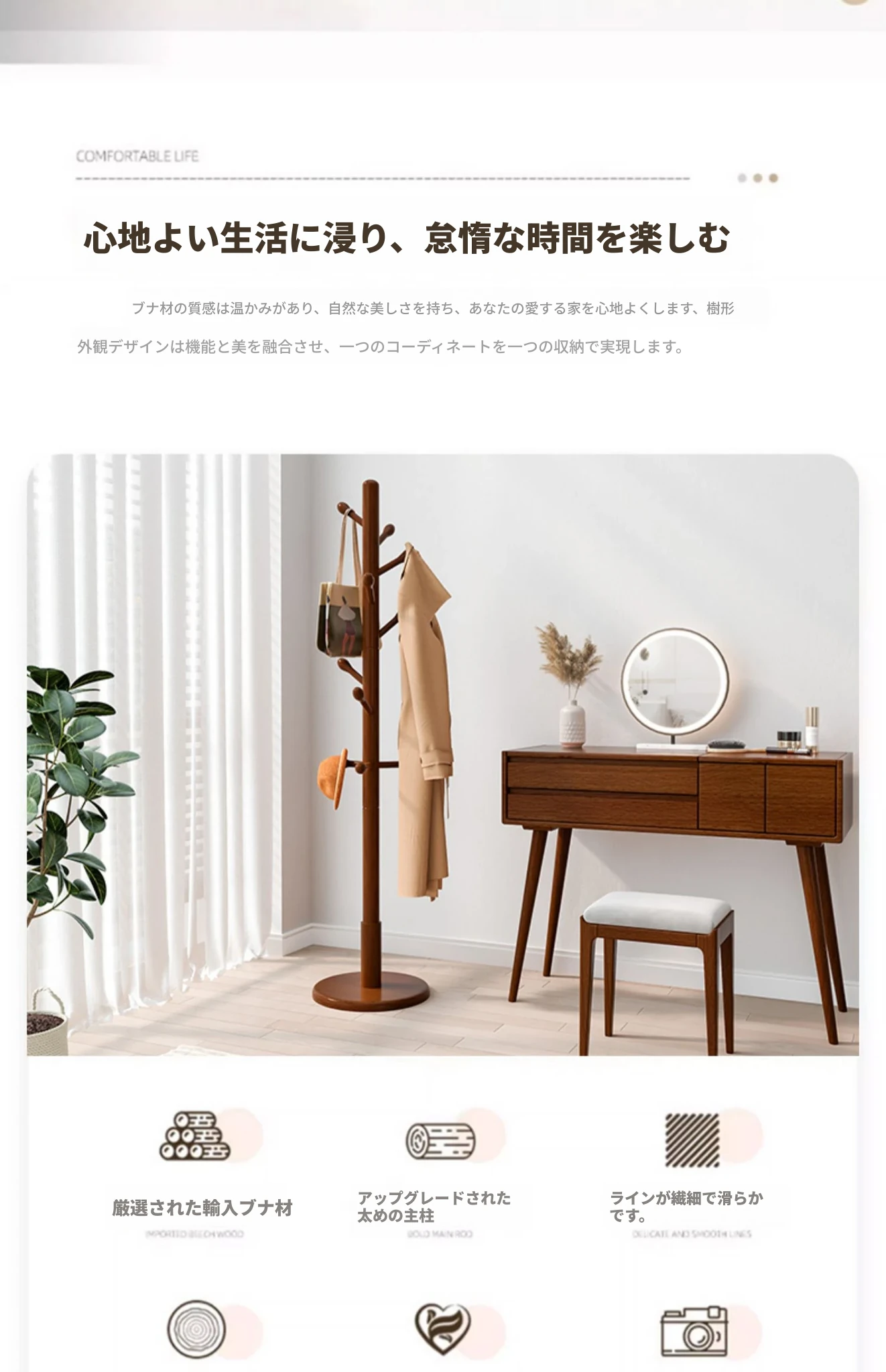 天然木製のスタンド型ハンガーラック - おしゃれな衣類&帽子掛け! シンプルなデザインで、寝室や大学の寮にもぴったり。丈夫なブナ材で、バッグも掛けられる多機能スタンド!お部屋をスッキリ整理整頓。