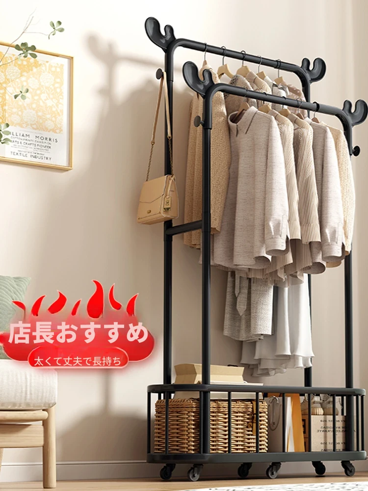 シンプルでおしゃれな鹿の耳デザインのコートラック - 室内用、ベッドルームやバルコニーで大活躍!衣類をスッキリ収納し、洗濯物も簡単に干せる便利アイテム。