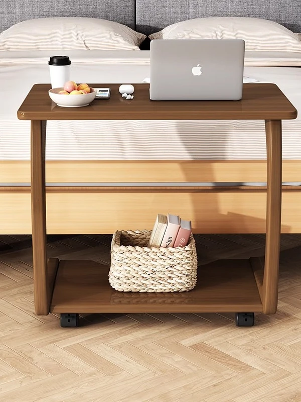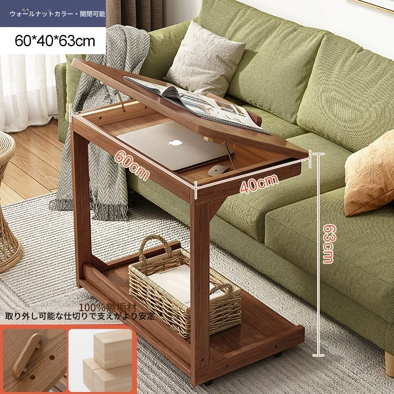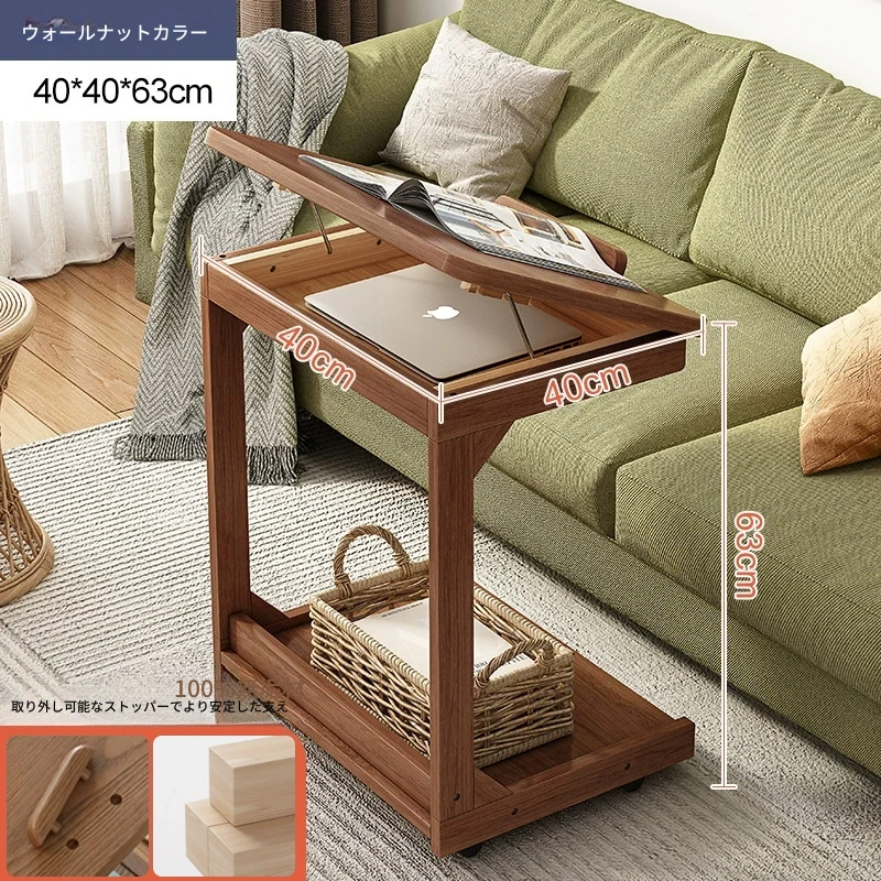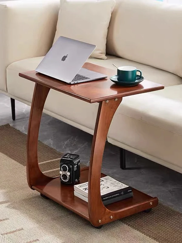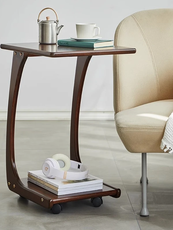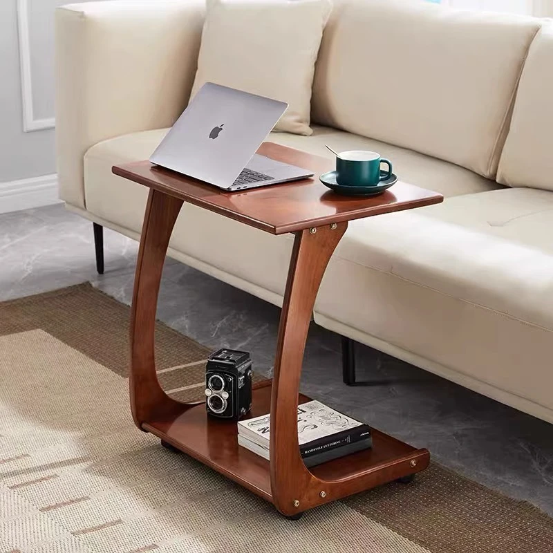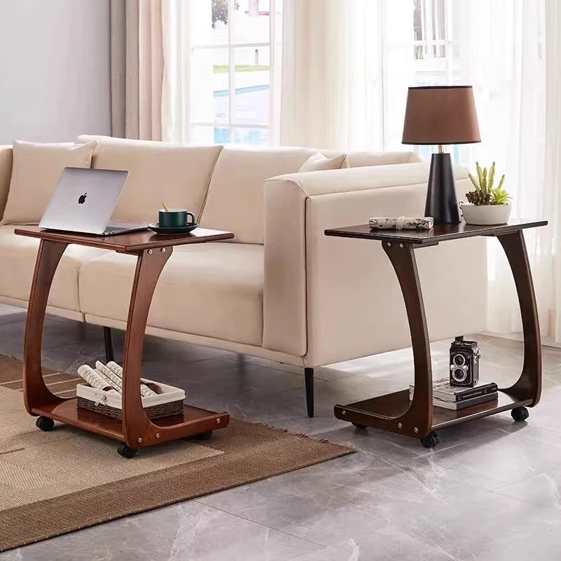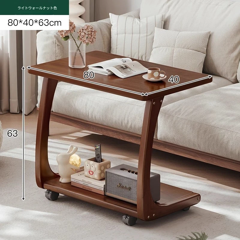 移動可能な実木製C型サイドテーブル - おしゃれで実用的!リビングやベッドサイドにピッタリ、狭いスペースでも大活躍。キャスター付きで簡単に移動でき、小さな部屋でも便利に使えます!