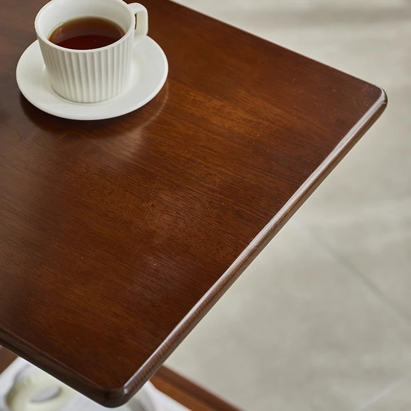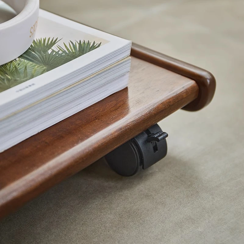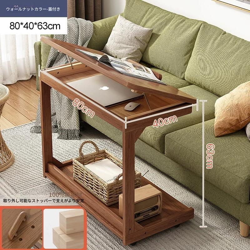 【高品質ラバーウッドテーブルレッグ】80cm-浅いウォールナット色⭐アップグレードフリップバージョン⭐ ブレーキ付きキャスター