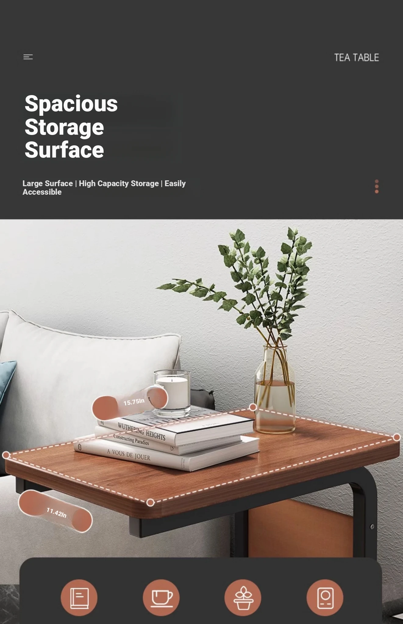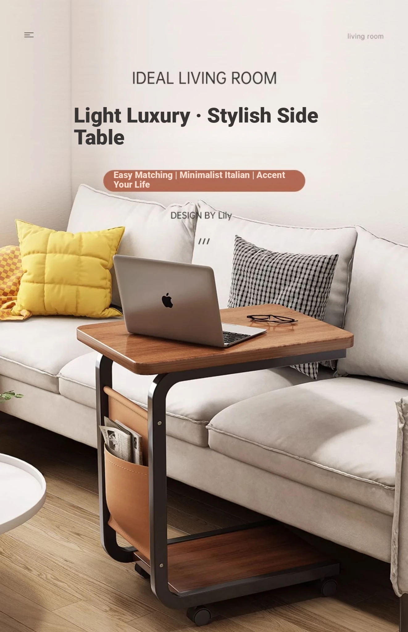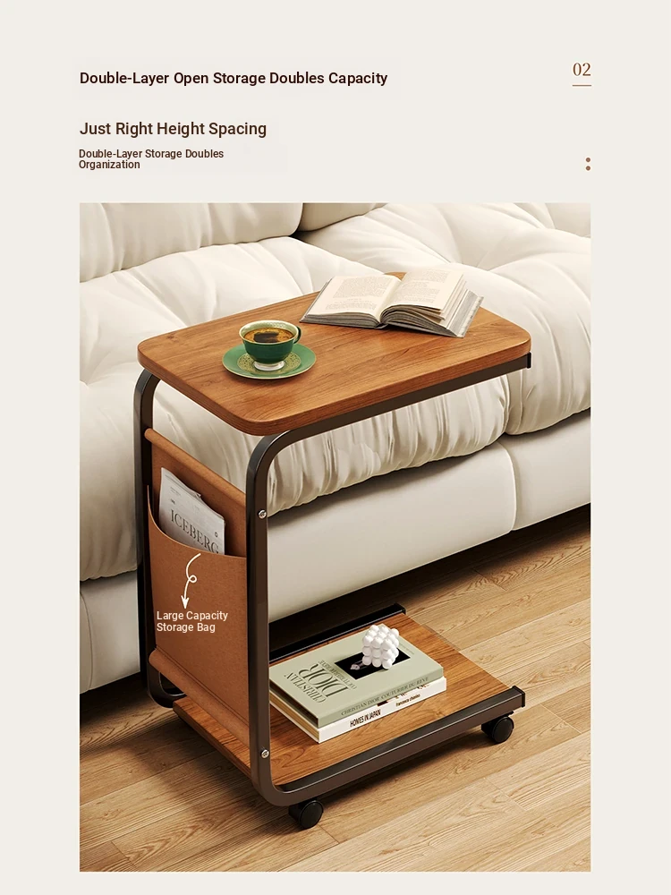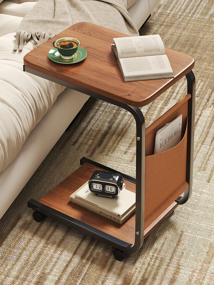移動式ソファサイドテーブル - シンプルでおしゃれなリビング用ミニコーヒーテーブル!寝室や角にぴったりのコンパクトデザイン。キャスター付きで便利なベッドサイドキャビネット&収納ラック!