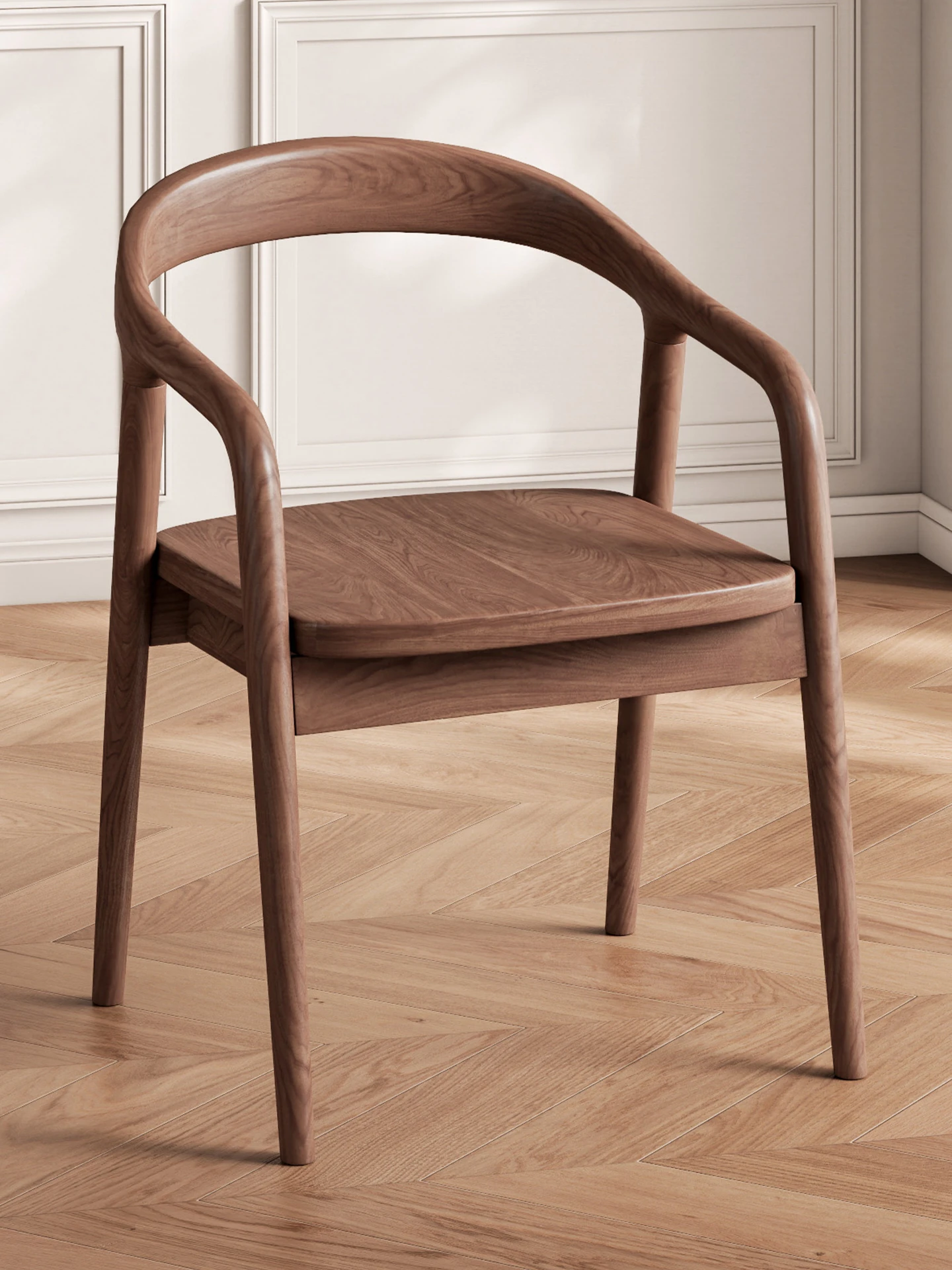 北欧スタイルの無垢材ダイニングチェア - シンプルで洗練されたデザイン、広島の快適なアームチェア。リラックスできる背もたれ付きの書斎用椅子として最適!