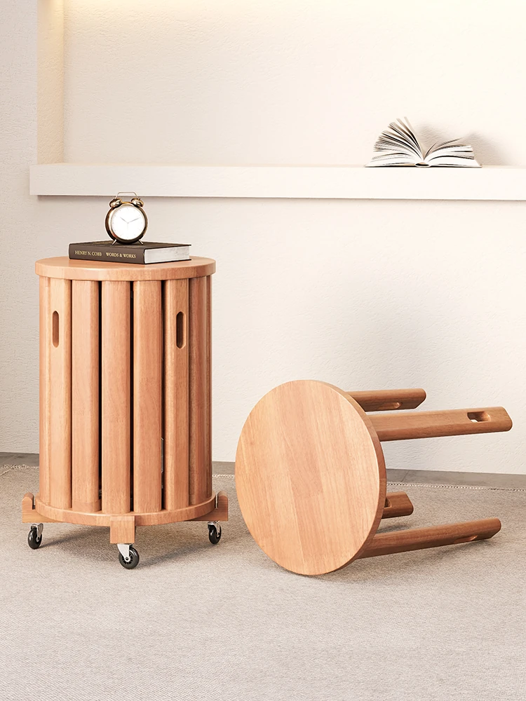 リビング用収納可能なスタッキングスツール - おしゃれで実用的な無垢材の丸椅子、家族や友人との食事に最適!省スペースで組み合わせ自由!