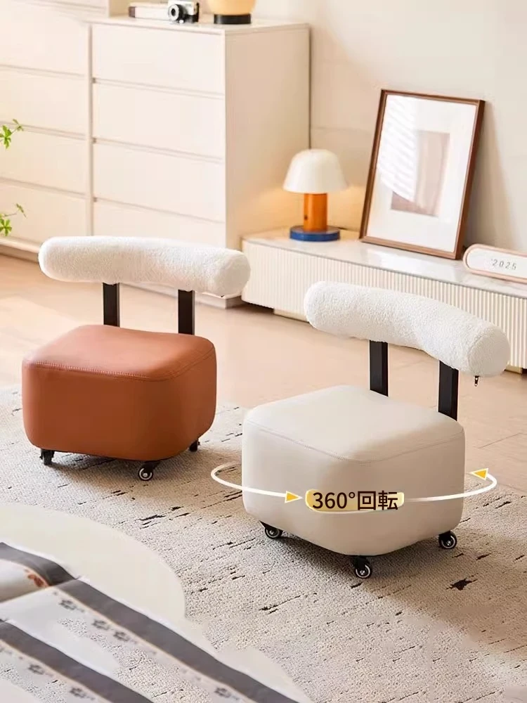 多機能キャスター付き小椅子 - 家庭用リビング移動ソファスツール!子供向けのクリエイティブなローキャスター椅子で、靴を履くのも楽々。背もたれ付きで快適な座り心地を実現!